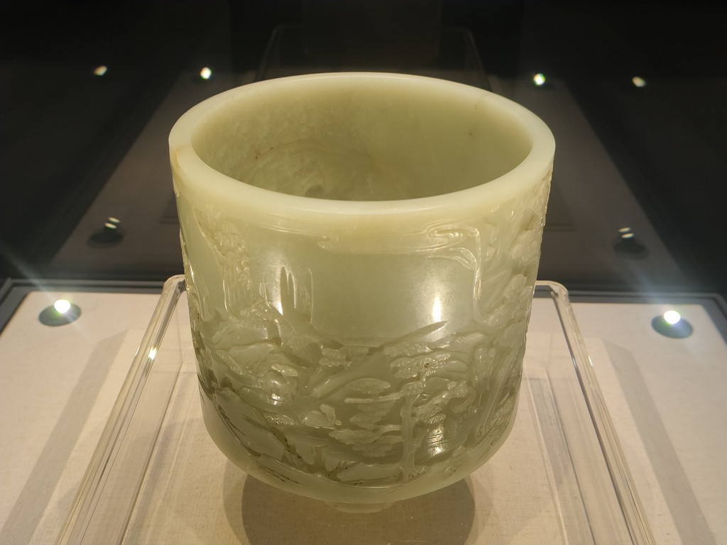 ↗松鹿同春青白玉笔斗(清)。国家一级文物。