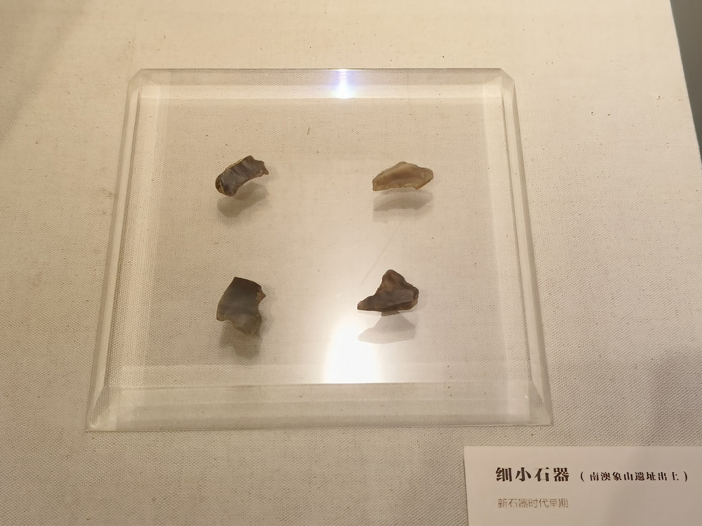 ↗细小石器(新石器时代早期)。发现于距今八千年前的南澳象山遗址,说明潮汕地区很早就有人类活动。