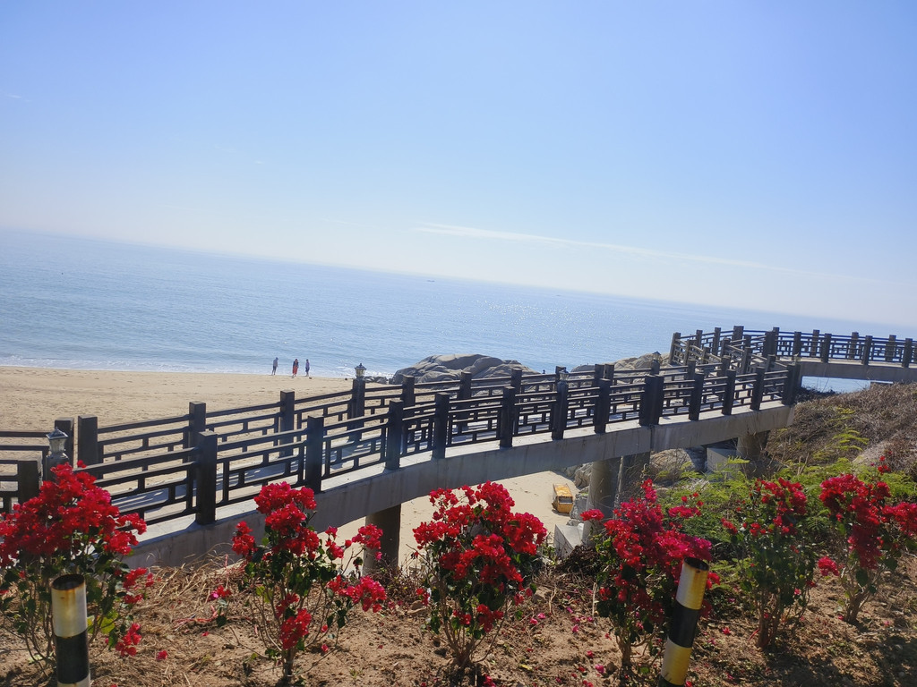 乘坐公交602路前往宋井景区,公交下车后需步行15分钟,沿途有阳光、沙滩、海浪相伴。
