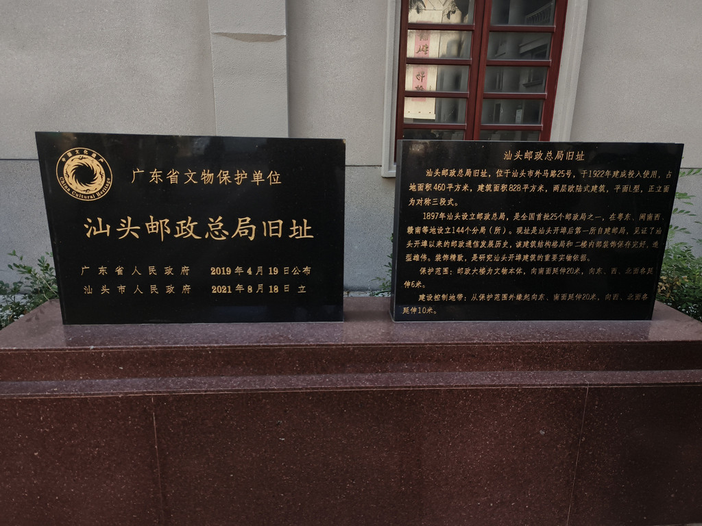 ↗汕头邮政总局旧址,外马路24号。设立于1897年的汕头邮政局,是中国首批25个邮政局之一,见证了汕头开埠以来的邮政通信发展历史。其建筑是广东邮政系统现存两座较为完整的欧陆风格实体之一(另外一座是广州邮政博物馆)。