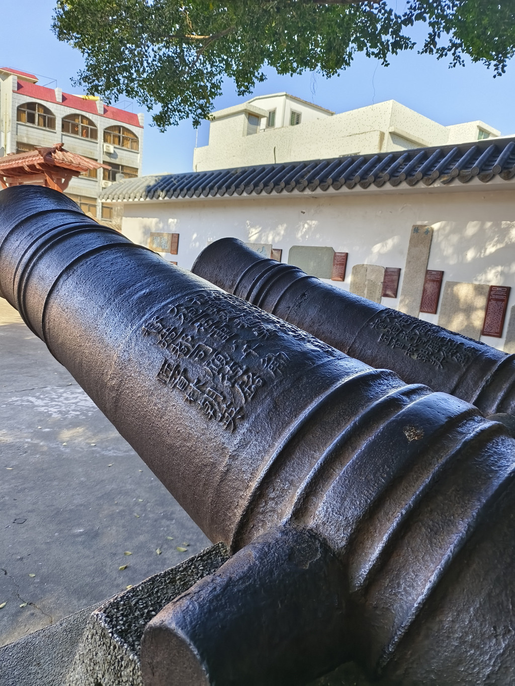 八千斤大炮。炮身铸文“闽浙督中协富于道光二十年秋奉闽浙总督邓、镇闽将军保、福建巡抚吴奏制。大炮一位重八千觔。督造都司顾德铭。匠首林朝英。”
