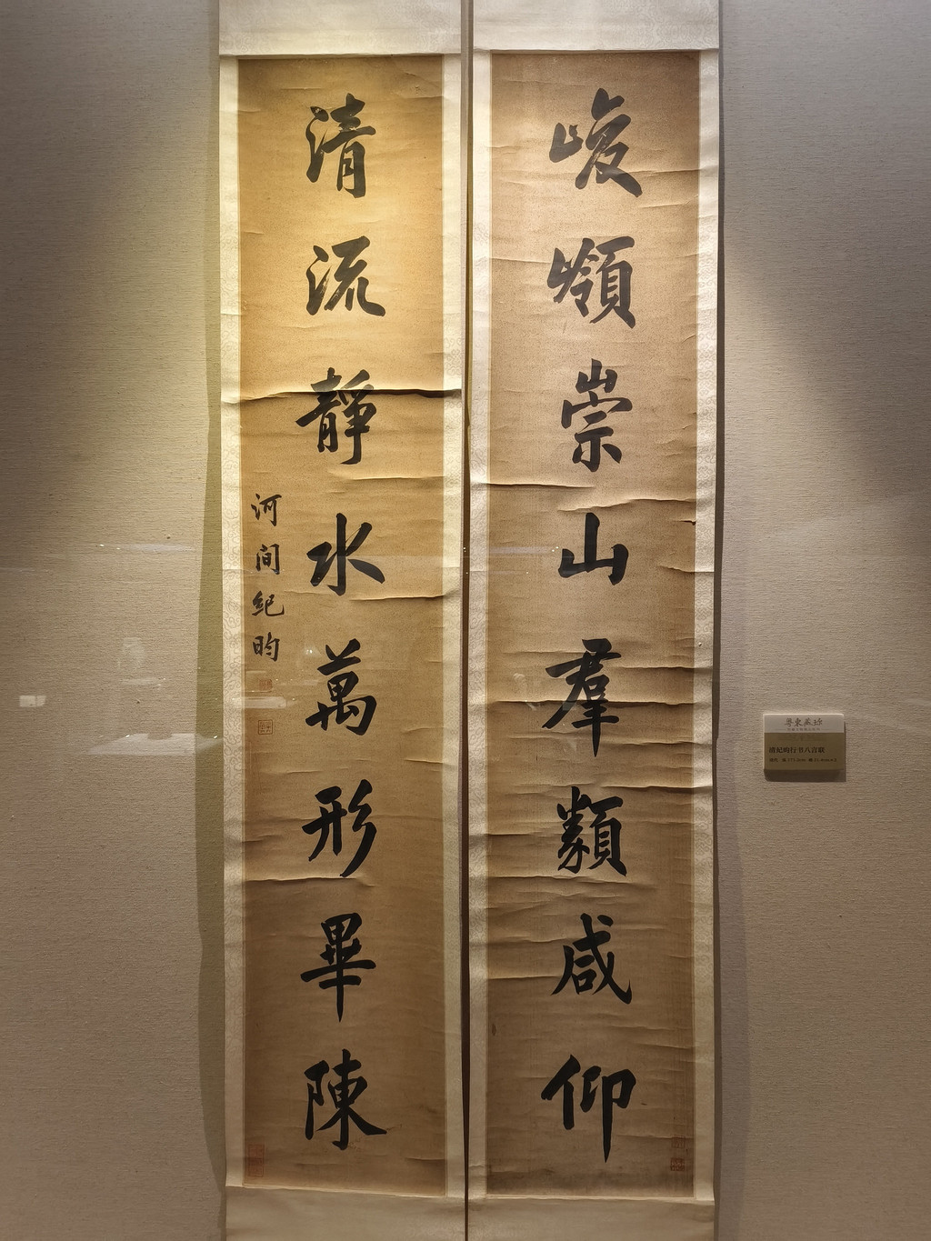 ↗纪昀行书八言联(清)。纪昀,清代学者、文学家、官员。工诗歌及骈文,长于考证训诂。官至礼部尚书、协办大学士。乾隆年间任《四库全书》总纂官,著有志怪小说集《阅微草堂笔记》等。