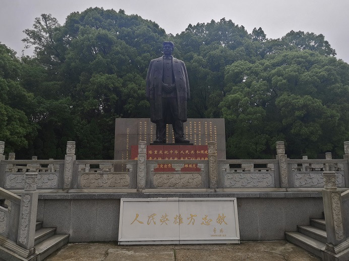 方志敏烈士陵园入口矗立着方志敏烈士塑像,塑像前是李鹏题写的“人民英雄方志敏”汉白玉碑,塑像后的影壁上刻着胡锦涛在纪念方志敏烈士仪式上的讲话。