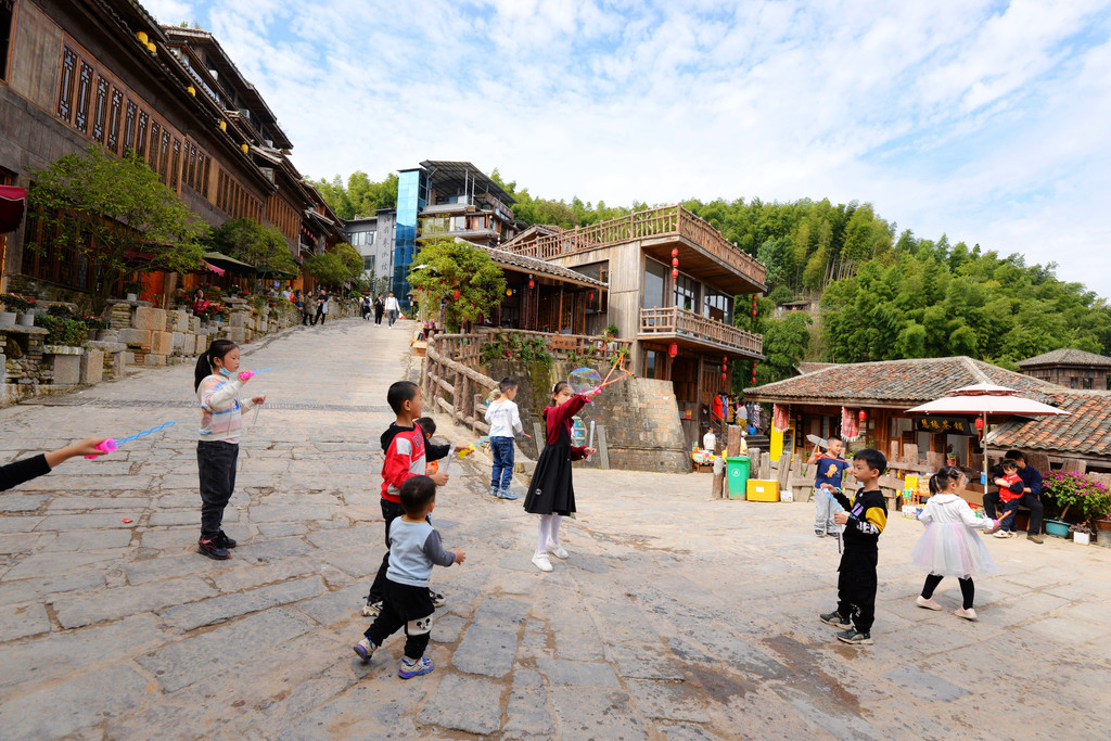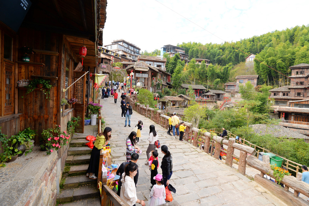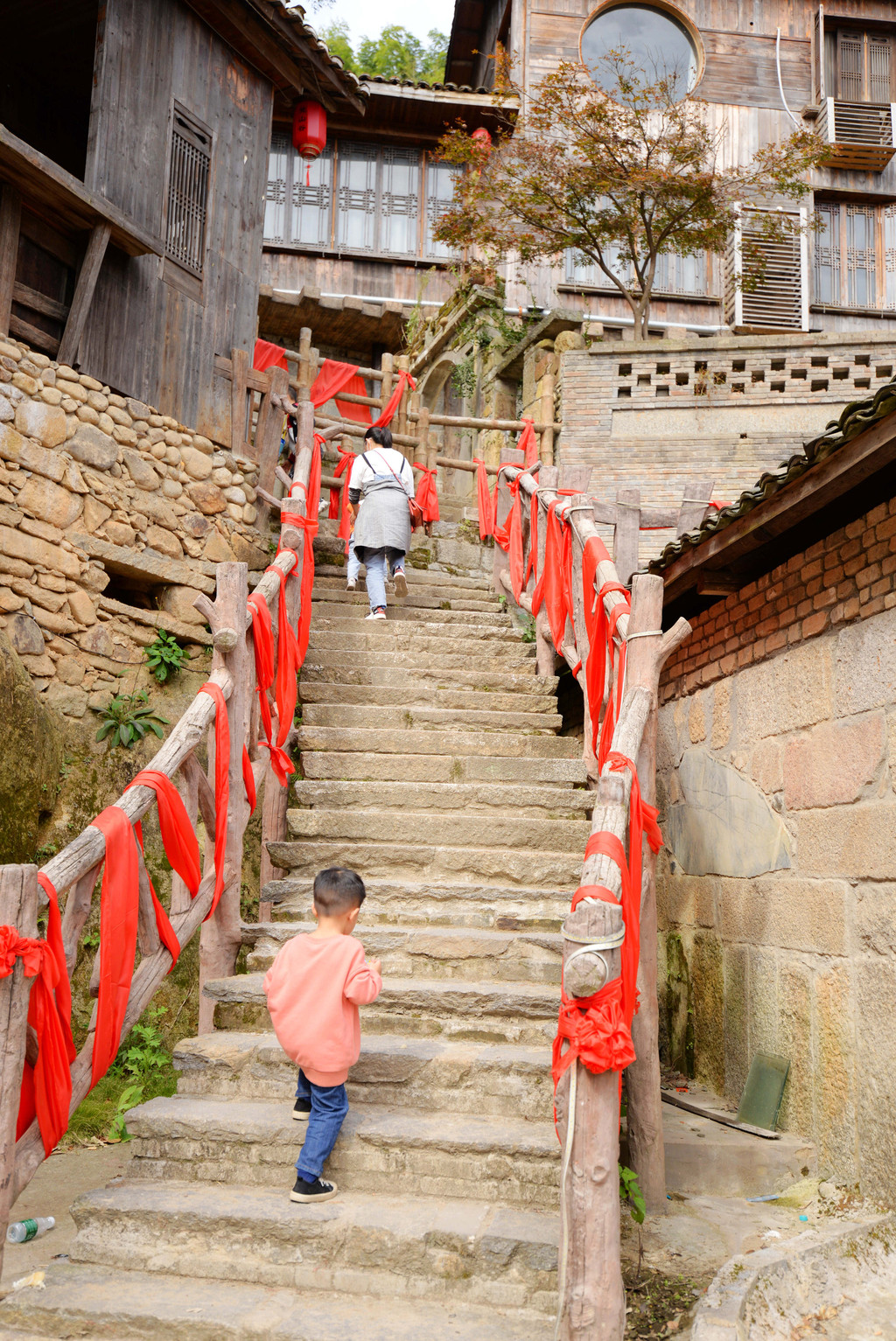 第一眼就被勾到了,这依山而上的村落,这层层叠叠的木屋,明明是第一次来,却似乎来过,默默神,哦,有我曾去过的西江千户苗寨的影子,又分明像婺源的篁岭村,一时我难以分辨这究竟是哪儿,总之这是一个用木板打造出来的新世界没错的。