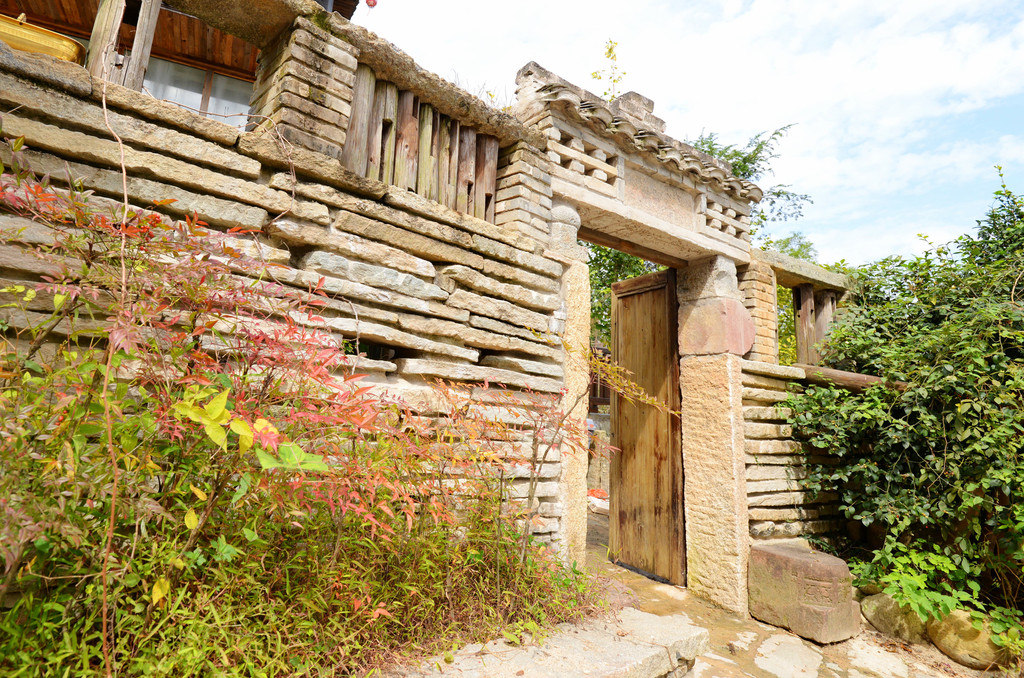 门前的围墙抑或门框用的是上了年纪的砖头、石块,便于我们更好的与历史对话。