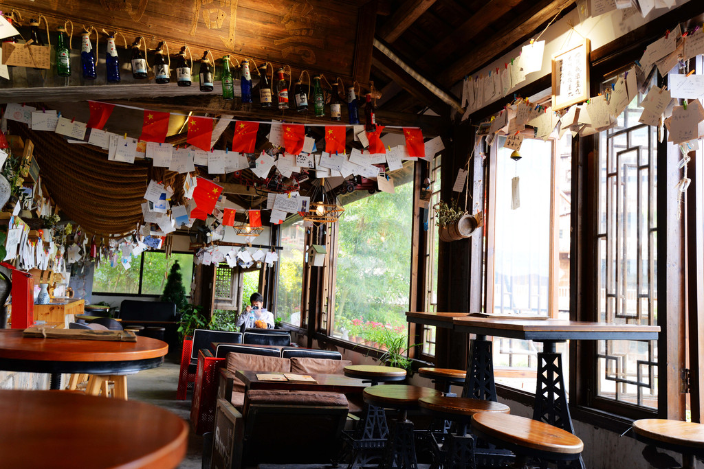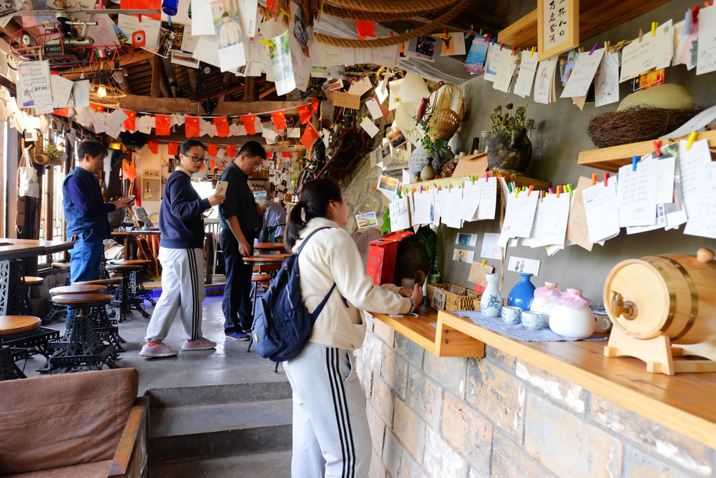 一个人高兴时会喝酒,一个人闷闷不乐时也会喝酒,待老板从深褐色的酒坛里用竹筒舀出酒,再配上两碟下酒的凉菜,坐在窗边望窗外的群山,酒不多不少,微醺就好,这便是小酒馆吸流量的魅力。