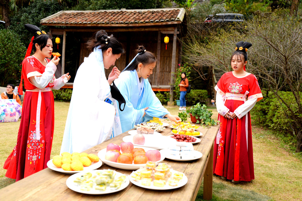 穿着汉服的福利就是好,可以免费吃点心、水果,不像我,刚伸手想解下馋就被旁边的工作人员怂得缩回了手。