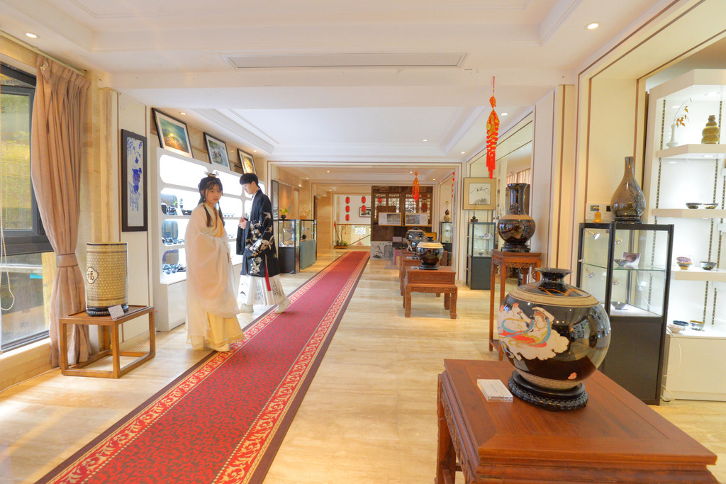唐人窑是一座木叶盏及衍生品的烧制基地,利用梅岭本地的桑叶,烧制出梅岭木叶盏以及杯、壶、瓶、瓷板等一系列产品。
