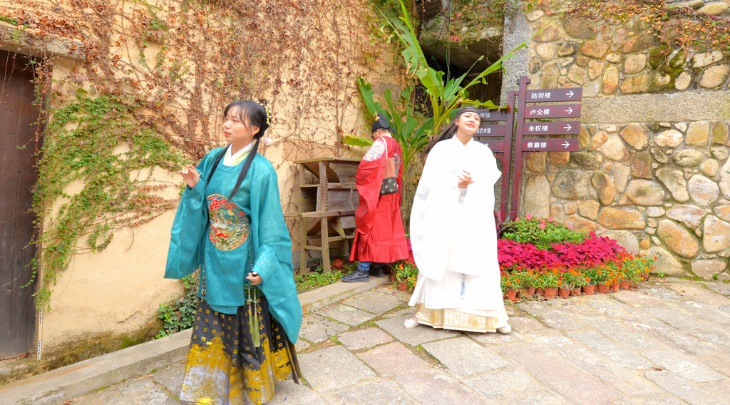景区的人群中不乏穿汉服的景区工作人员,还有巡逻的“锦衣卫”,这样的场景拍古装片完全不用搭场?。