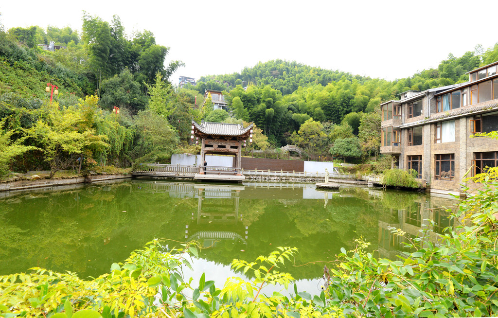 很多游客来到曼山谷,往往会错失后山的花园,这里有个“清心阁”,阁前一汪湖水顿给大山平添了几分柔情。
