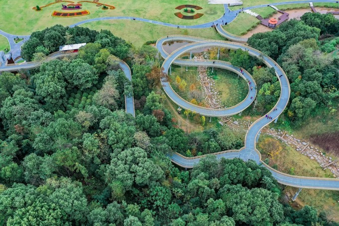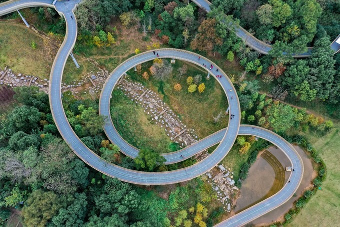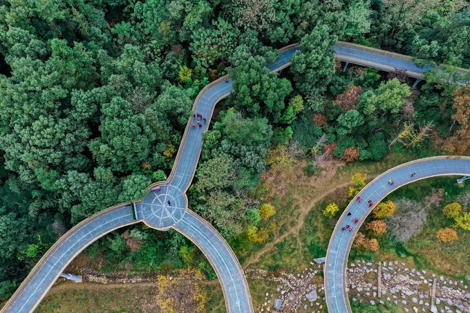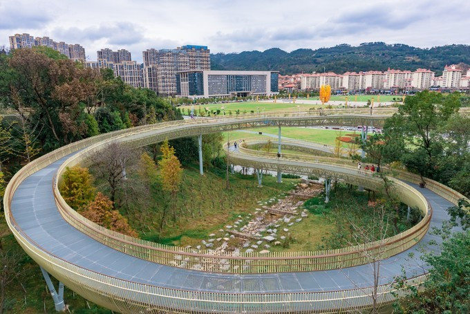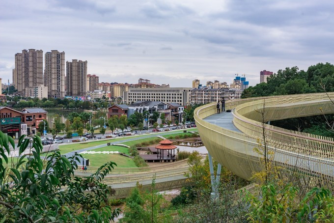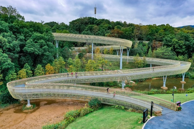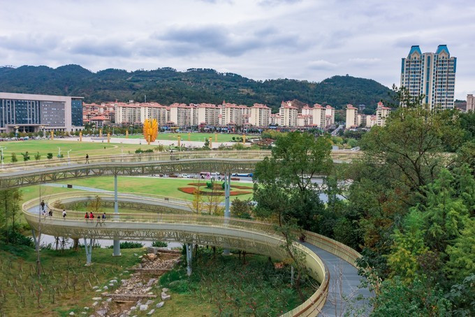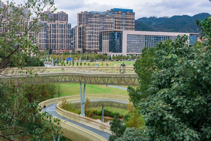 走在盘旋环绕的步道之上,脚下是生机勃勃的绿色海洋,抬眼望去森林环抱的是正在茁长成长的家乡故土,这种自豪感幸福感,让人羡慕。