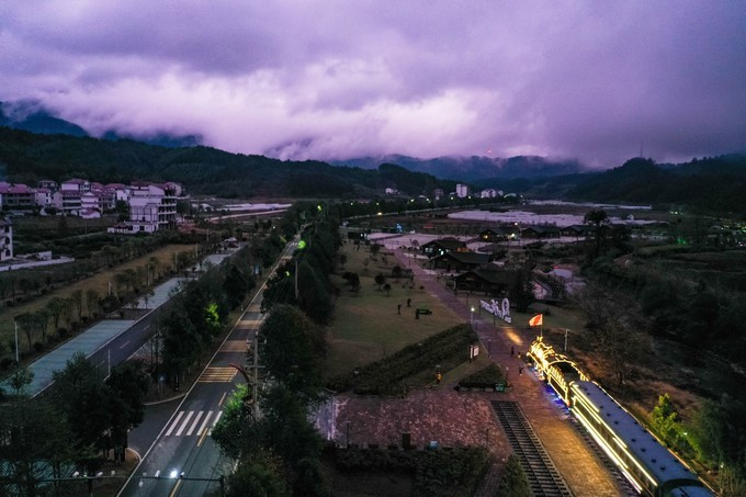 大觉溪就在大觉山的脚下,一条溪流,一座小桥,溪边的周家,刷白的墙壁,光洁照眼,整整齐齐。景区内有一列“绿皮火车”,是改装的特色休息区,里面是咖啡馆和小酒吧,晚上火车上的彩灯会亮起,坐在夜色撩人的大觉溪旁, 唱着曲子,弹着吉它,喝着小罐啤酒,和朋友碰杯,畅快淋漓。