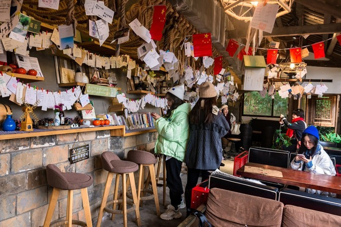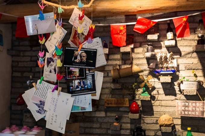 山腰深藏一座小酒吧,不起眼的门脸儿,一不留神就可能错过它。窄窄楼梯十几步就能看到另一番精致,现代文艺的氛围在宁静的曼山谷并不突兀,一把吉他,一杯清酒,一张明信片,一首歌,侧眸望去的方向,是向往已久的乌托邦,是梅岭旖旎湖光山色,是内心平静的安详。