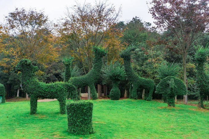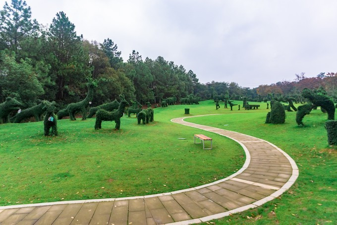 最后来到了艺树坊,艺树坊内有很多的植物造型,均采用小叶女贞及金叶女贞编制而成。共分六大主题:有 中国 梦、时代门,人与自然的和谐,夹道欢迎,快乐运动,动物世界,穿行隧道等多个场景,是休闲拍照的最佳场所。