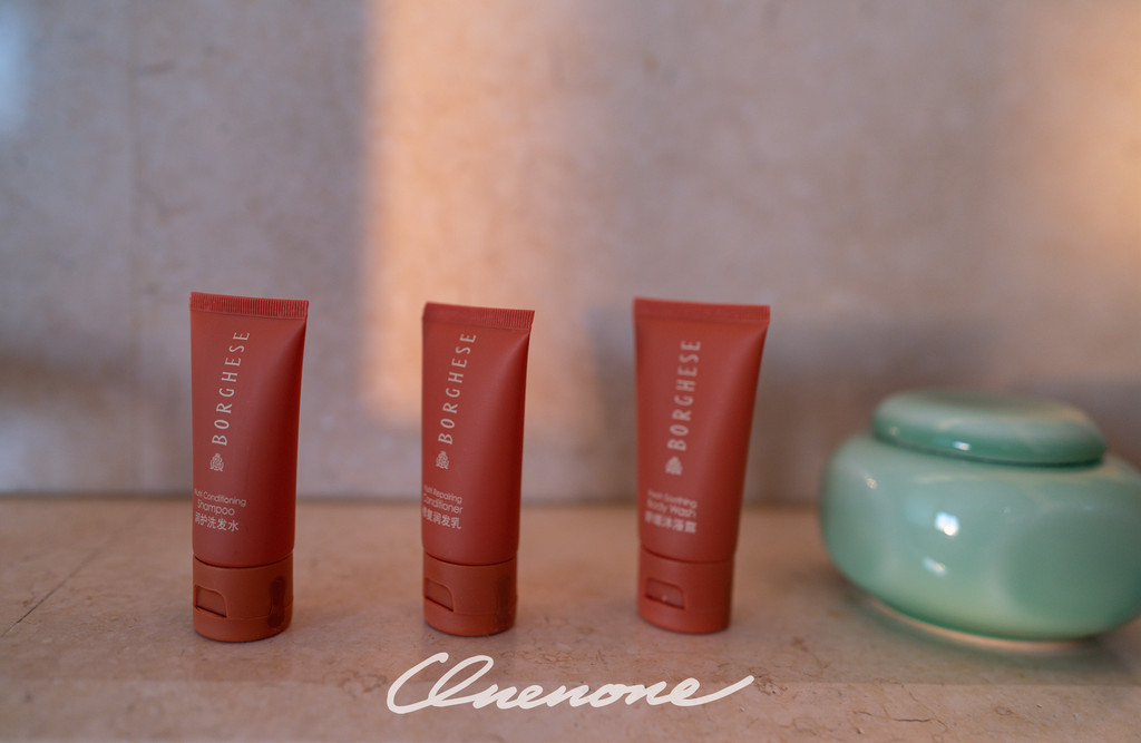 洗护备品:皇冠假日酒店定制的意大利天然矿物温泉洗护品牌贝丝佳Borghese,清洁力强,香型低调,配方柔和,适用于各种天气条件和使用者的各种皮肤状态。