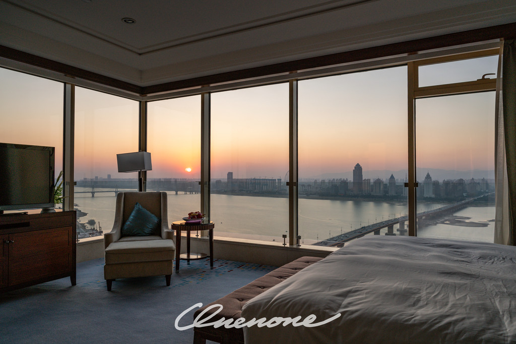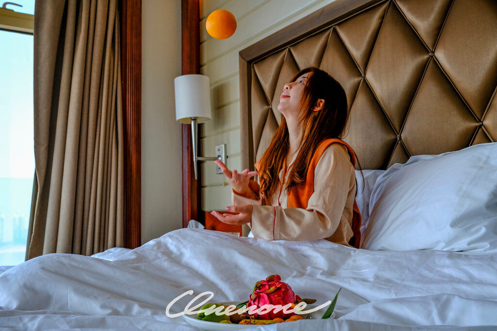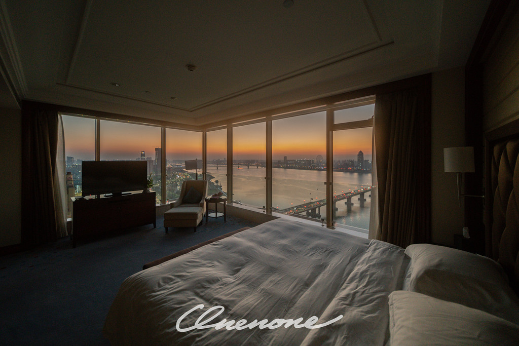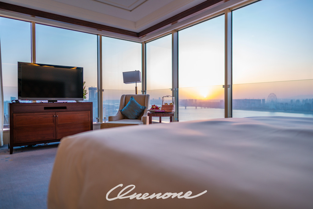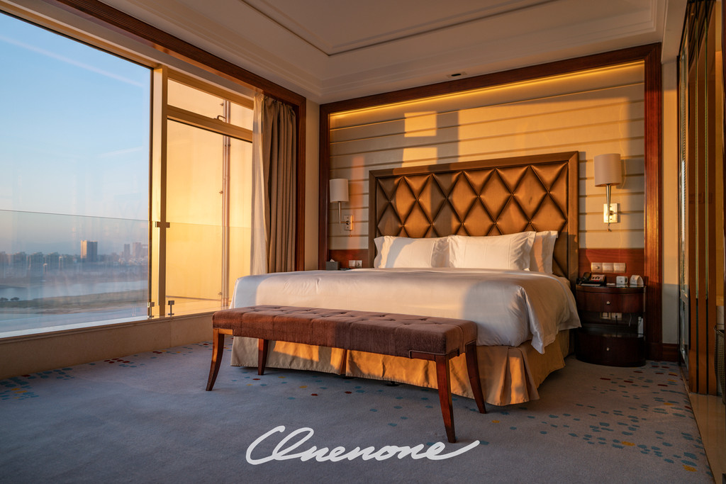 床品布草:布草康乃馨Canasin,床垫席梦思Simmons,舒适度、支撑力、透气性都很好,助你整晚安睡,躺在床上放眼望去,是辽阔江景和绝美夕阳,躺赢的感觉,或许莫过于此。