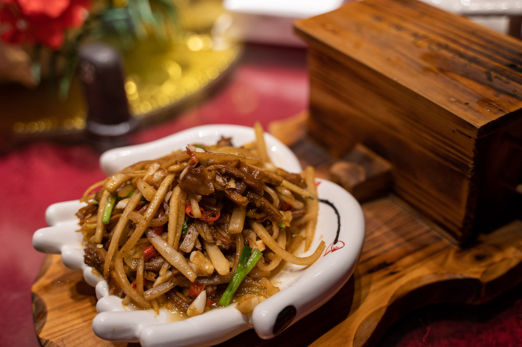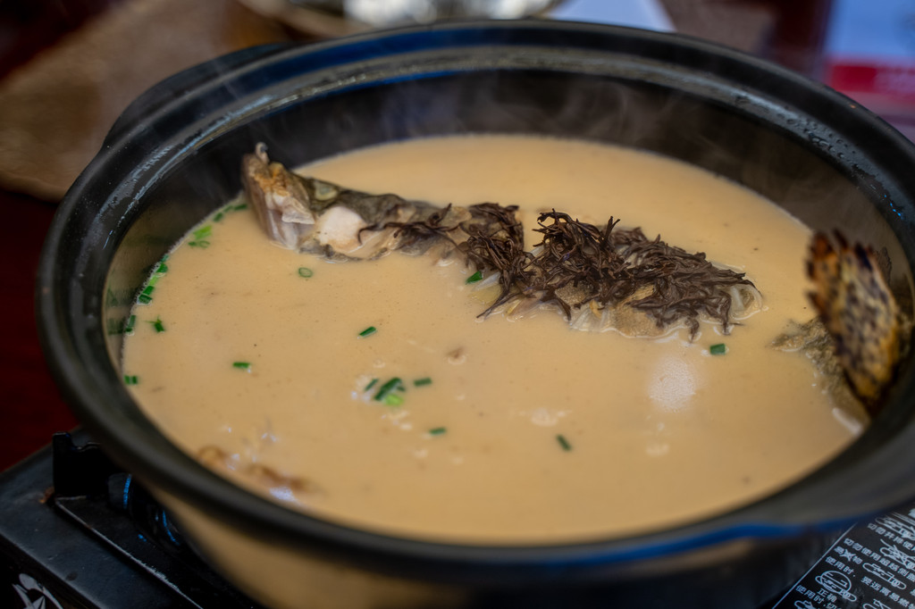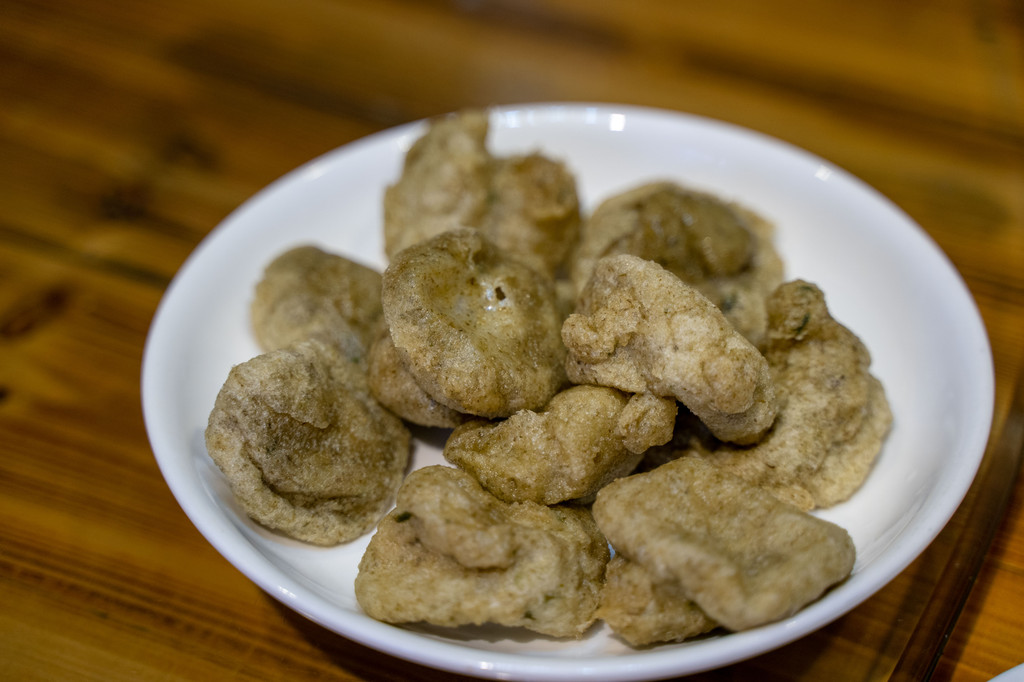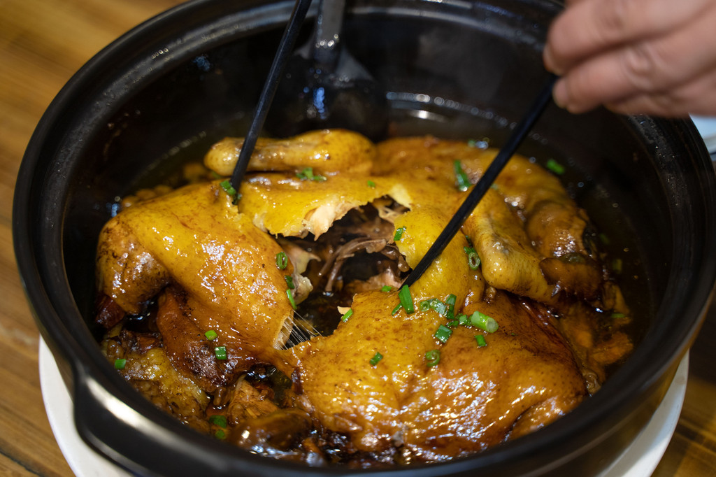 午餐我们来到山泉滋味餐厅,餐厅就坐落于太平心街,是这里非常有特色的一家餐厅,老板娘也是一个爱吃的人,所以这里的菜品味道自然很好。当砂钵端上桌,盖子掀开,一股浓郁的香味扑鼻而来,这就是山泉滋味餐厅的招牌菜品——砂钵神仙鸡。神仙鸡是老板娘自创的一道菜,也是曾经获过奖的,本地的优质土鸡在砂锅中长时间焖煮,鸡的肉质轻易就分离开来,肉香四溢,唇齿留香。