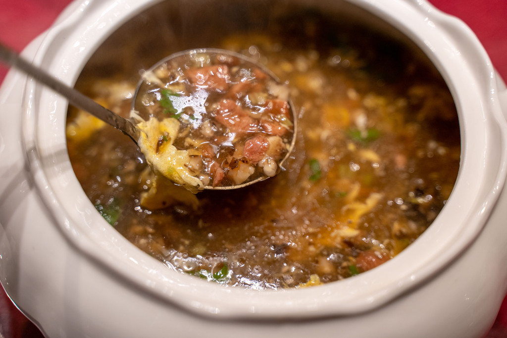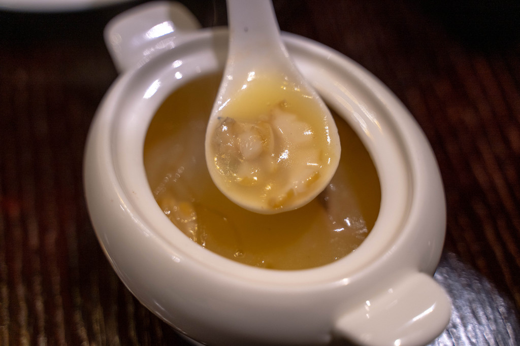 琴源山庄,各色养生药膳老火汤非常正宗,比如这个鱼翅羹,新鲜丰富的食材,简单的烹煮方式,不同的食材交融碰撞出的美味,口中被鲜香包裹。