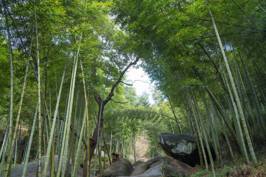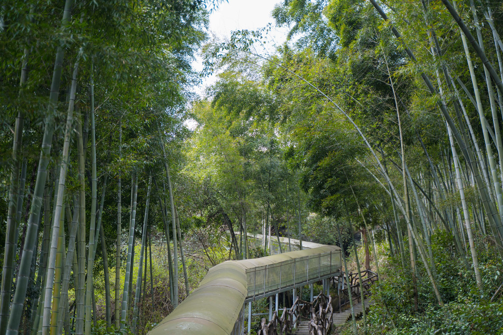 越过吊桥,便开始真正的领略这座“小庐山”的魅力,呈现在眼前的是茂密的竹林,翠绿又修长的竹子,在这样的环境里登山也是一种享受。
