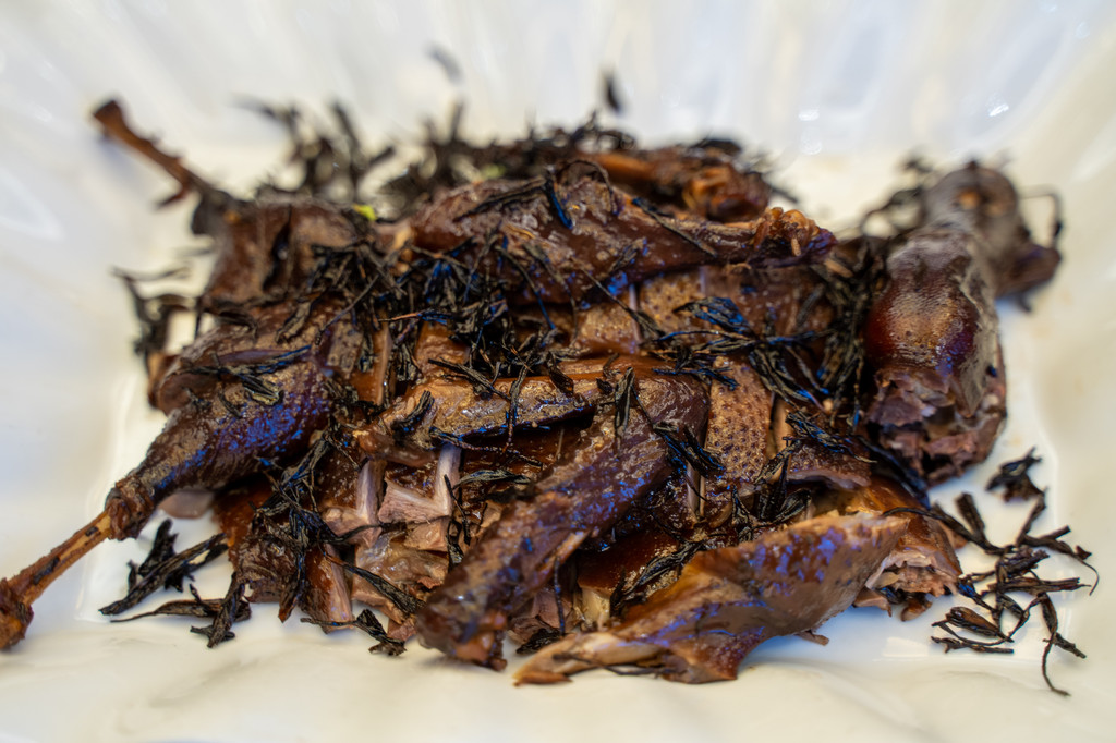 这里名茶汇聚,而全茶宴的菜品也都会根据不同的食材搭配不同的茶叶,比如用抹茶蒸土鸡蛋、林恩红茶来制作红烧肉、林恩绿茶小叉鱼,每一道菜都非常有特色,味道也挺不错。