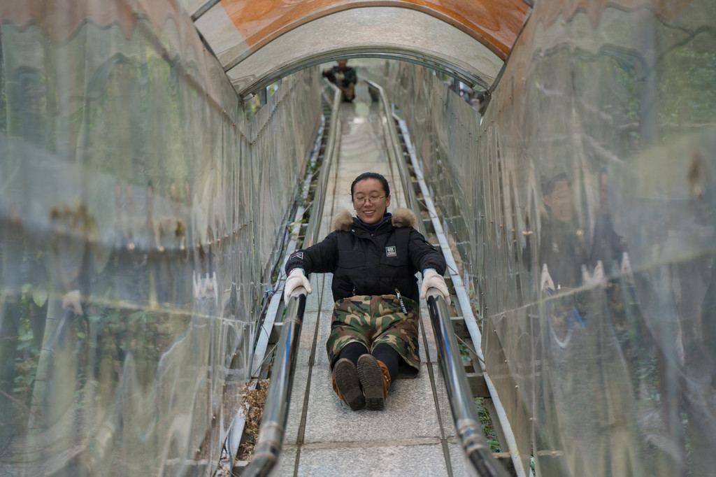 狮子峰的门票40元一位,滑道是下山省时省力的好办法,如果是夏季的话,这里还有隧道高空玻璃漂流可以体验。
