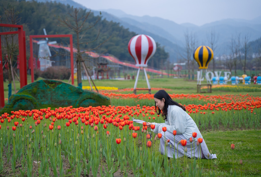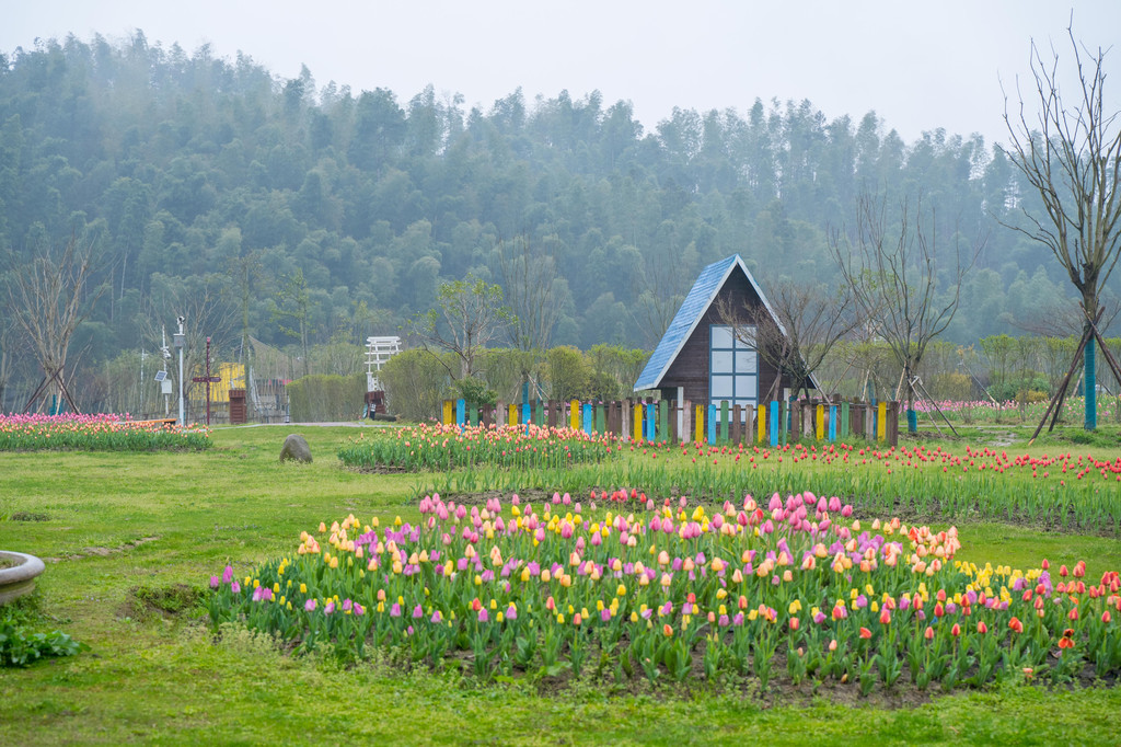 南昌的三月,短暂而美丽,而九龙溪田园综合体则是欣赏这场春色的绝佳去处。郁金香,花期如梦,开在三四月,最是撩人心思,那些人工培植的郁金香花圃,参差错落,或是陇上一片,或是坡下一畦,花开品种繁多,或白、或红、或紫、或蓝,群芳斗艳。这里有50万株郁金香花海,30多个品种构建了一个绚丽多彩的花卉世界。