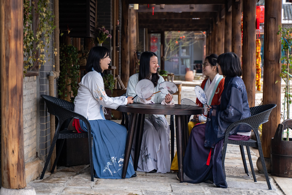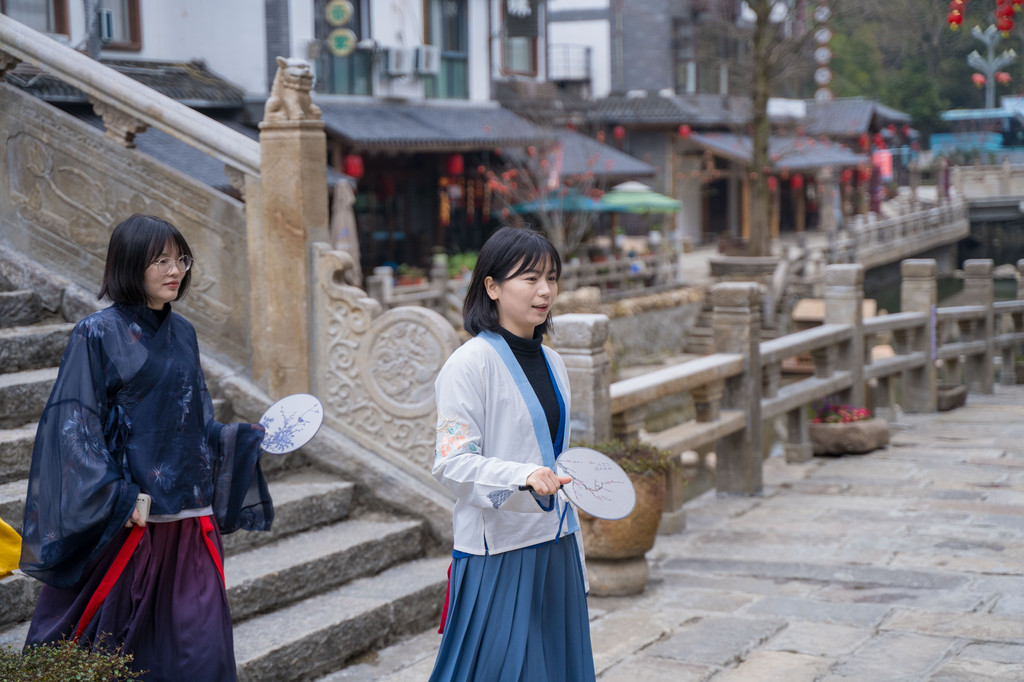 来到心街,最有意思的体验便是换上一身汉服,漫步在这千百年赣式风格的街道上,选一处自己中意的场景,或立于桥头之上,或行走在长廊之内,亦或是端坐在古树之下,凹一个造型,来一张合影,和汉服的合影,和心街的合影,和这大美山水的合影。