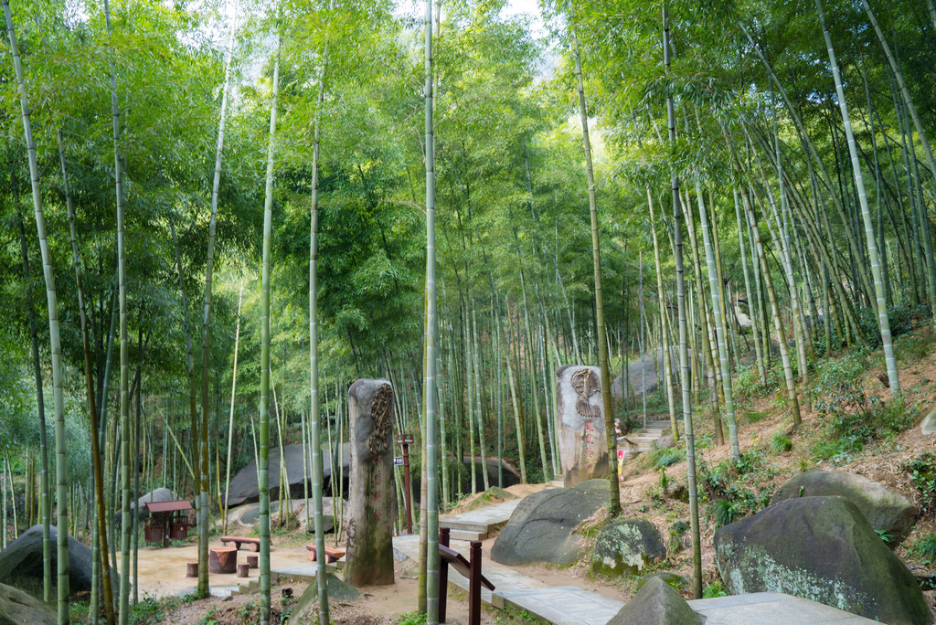 在竹林中,会经过一片石碑区,名为“鸾凤和鸣”,在这里有岔路,其实两条路都可以上山,个人建议从右侧的步栈道上山,因为滑道是在左边,这样从左边下山就可以乘坐滑道了。