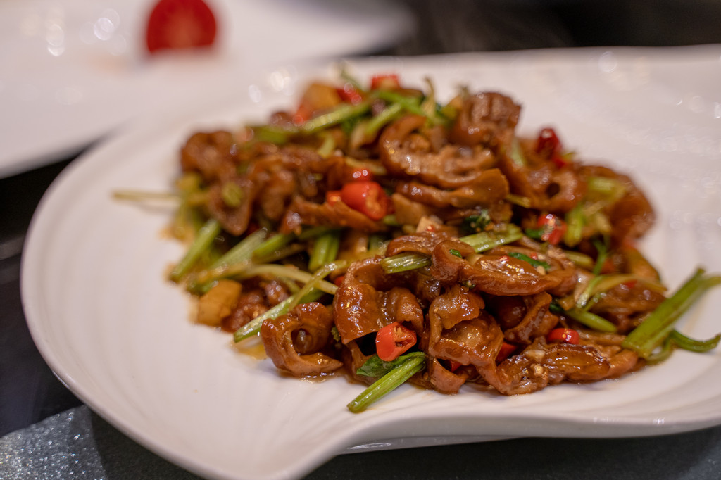 爆炒肥肠,这是一道极具江西特色的菜肴,也是琴源山庄的招牌菜品之一。肥美干净的肥肠,配以香芹、小米辣爆炒,口感浓郁,辣味劲爽,是米饭的绝配。