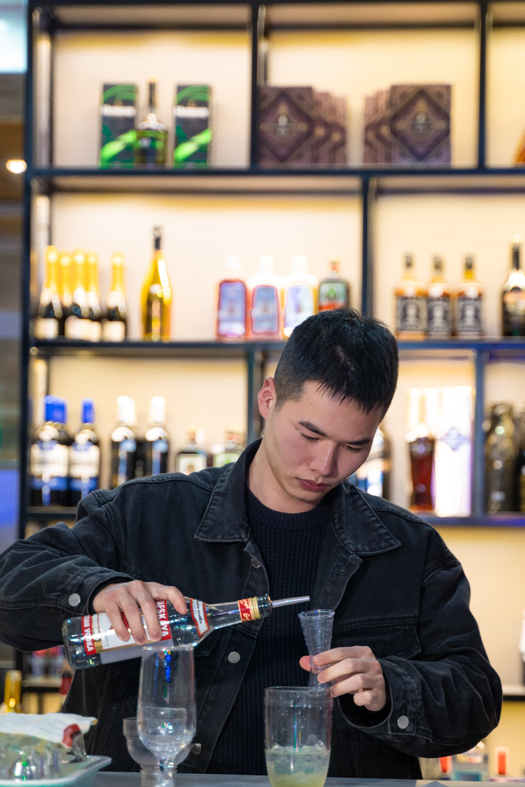 作为音乐清吧,音乐和酒自然都不可或缺,音乐有专业的歌手,而这里的酒也是非常丰富,就在前台摆放着各式各样的酒,还有专业的调酒师,为不同的顾客调制专属的酒品。