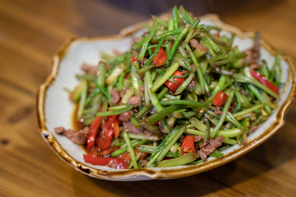 野生水蕨炒腊肉,三月的太平,处处都充满了生机,就连山泉滋味的餐厅也是如此。这个季节,是品尝野菜的最好时节,雨后的野菜钻出泥土,此时的野菜鲜嫩无比。野生水蕨炒腊肉,野生的水蕨菜,配上当地自制的土猪腊肉,家常的做法,却让人大快朵颐。