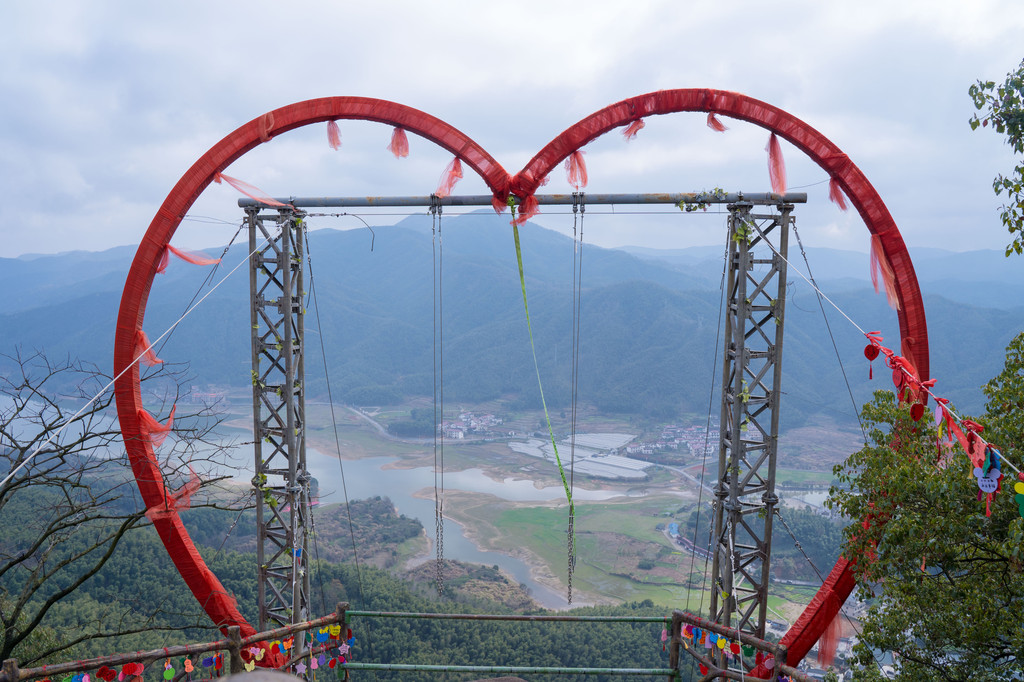 来到山顶,山顶平台放置了一个高空秋千,矗立在悬崖峭壁上的秋千,稍微荡出便已经悬空几十米的高度,这个秋千,不仅仅是浪漫的代名词,更是勇敢和刺激的象征。