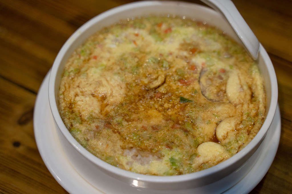 老板娘也是一个有故事的人,即使中午较忙,也会跟我们分享一些她的故事、菜的故事。餐厅的许多菜品,都是老板娘的创新菜,有的时候灵机一动便开始创新研究,最后经过多次尝试不错就端上了餐桌供大家享用。比如这道野葛肉饼土鸡蛋羹,老板娘给它取了一个好听的名字——春天来了,这道菜品尤其适合老人和小孩,这也是老板娘创造这道菜的初衷。