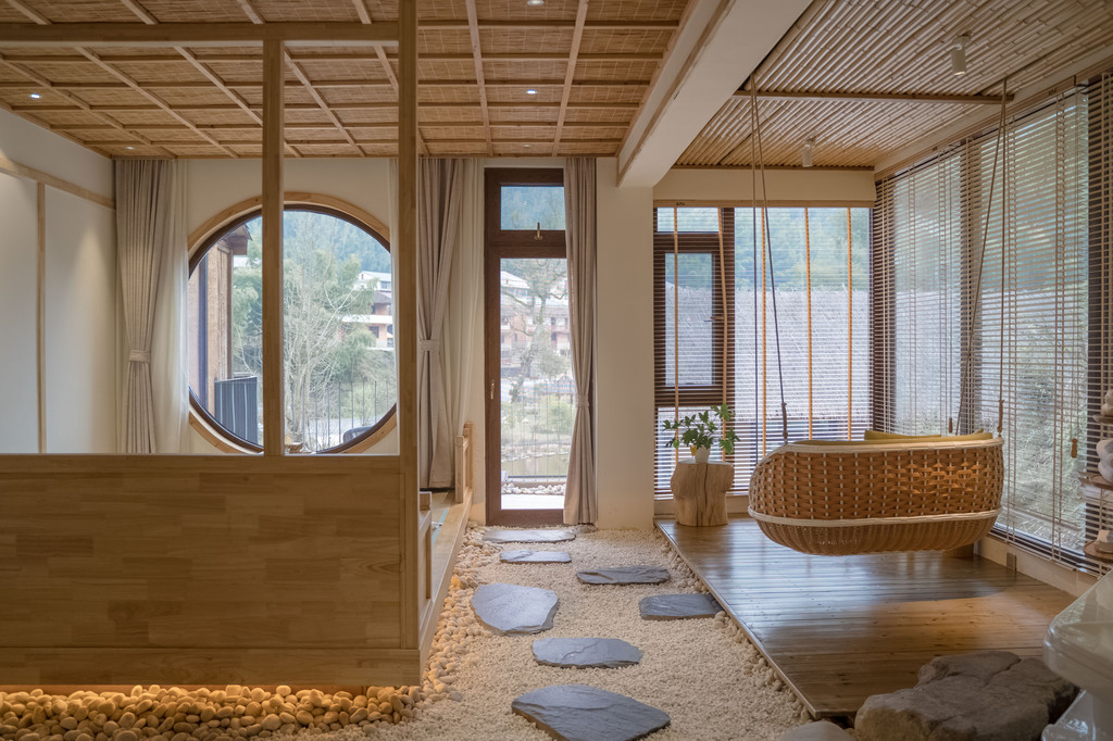 雨田水巷,是村子里最火的一家民宿,平常工作日的这里,都会经常出现一房难求的现象。原生态,是它的最大特色,保留了原有的两栋老房子主体,改建也都全部是就地取材,可以说是真正的原生态自然环境。为了能给来到这里的住客更好的服务和体验,这家民宿仅仅只有9间客房,每一间客房都是极具特色风格迥异的,有的是北欧风,有的是日式风,有的是中式田园风,有的是法式乡村风。