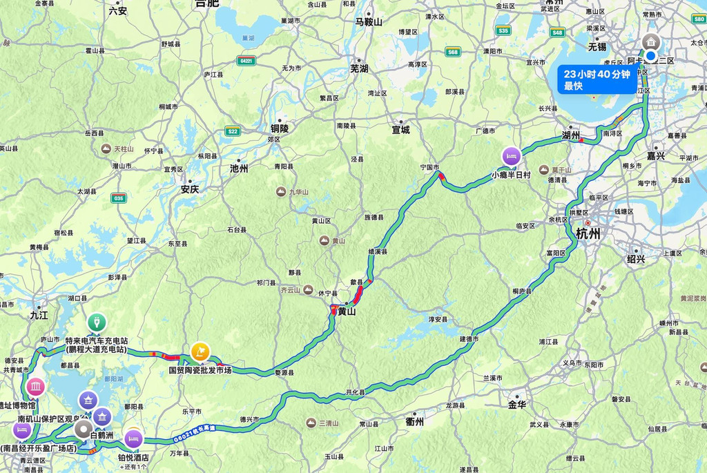 行程计划是两个月前就在谋划的,看了大量的网页,小视频,社交平台的文章,初步拟定的行程是,年初二一早苏州出发,开一天车,夜宿余干县,第二天,前往白鹤洲,停留一天,第三天上午,前往五星农场观鸟点,下午前往南矶山或者江豚湾,第四天上午,南昌海昏侯博物馆,下午赶往景德镇,陶艺街、国贸看看瓷器,第五天,回程。