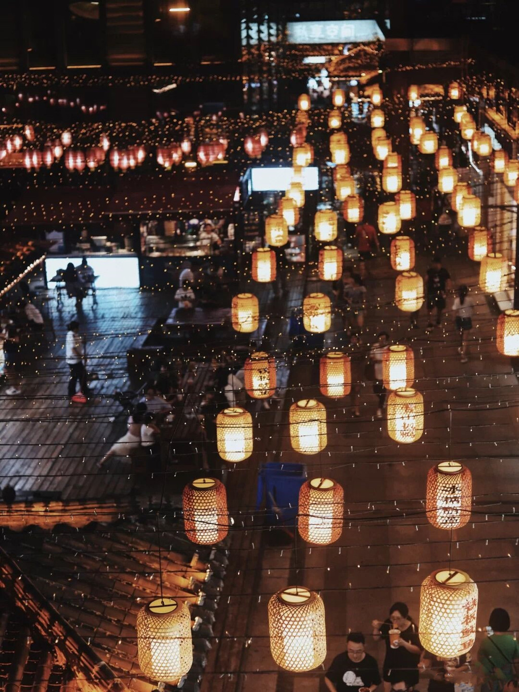 这座广场,白天你来时可能会觉得平平无奇,但是等到夜晚开灯之后,灯笼一盏盏点亮后,夜景灿若星辰;