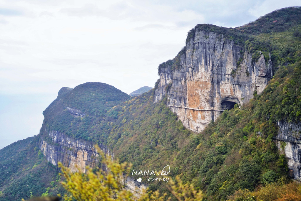 前面说到金佛山是典型的喀斯特台原地貌,山顶有高达50m落差的垂直的峭壁,而绝壁栈道就是开凿于崖壁之上,给人以腾云驾雾的感觉。看似惊险又实则安全,便是绝壁栈道最好玩的地方,快拍下你们的合照,证明你的勇敢的心吧~
