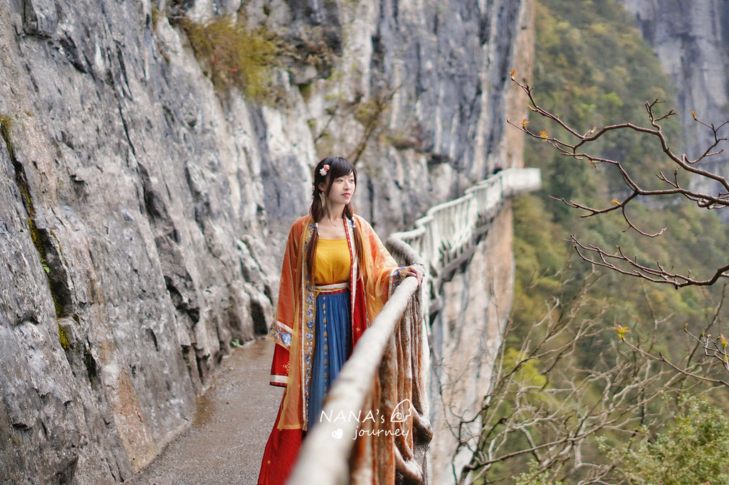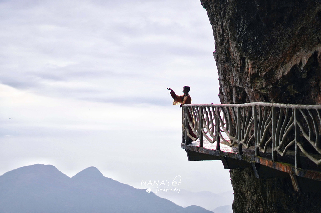和栈道拍一张“勇敢证明”是必须的!就算你真的有恐高不敢靠近悬崖峭壁,也要尝试着摸着围栏拍上一张。照片中人不要过大,要显示出悬崖峭壁以及栈道的长度,这样酷炫的绝壁栈道照保证你成为朋友圈最靓的仔。