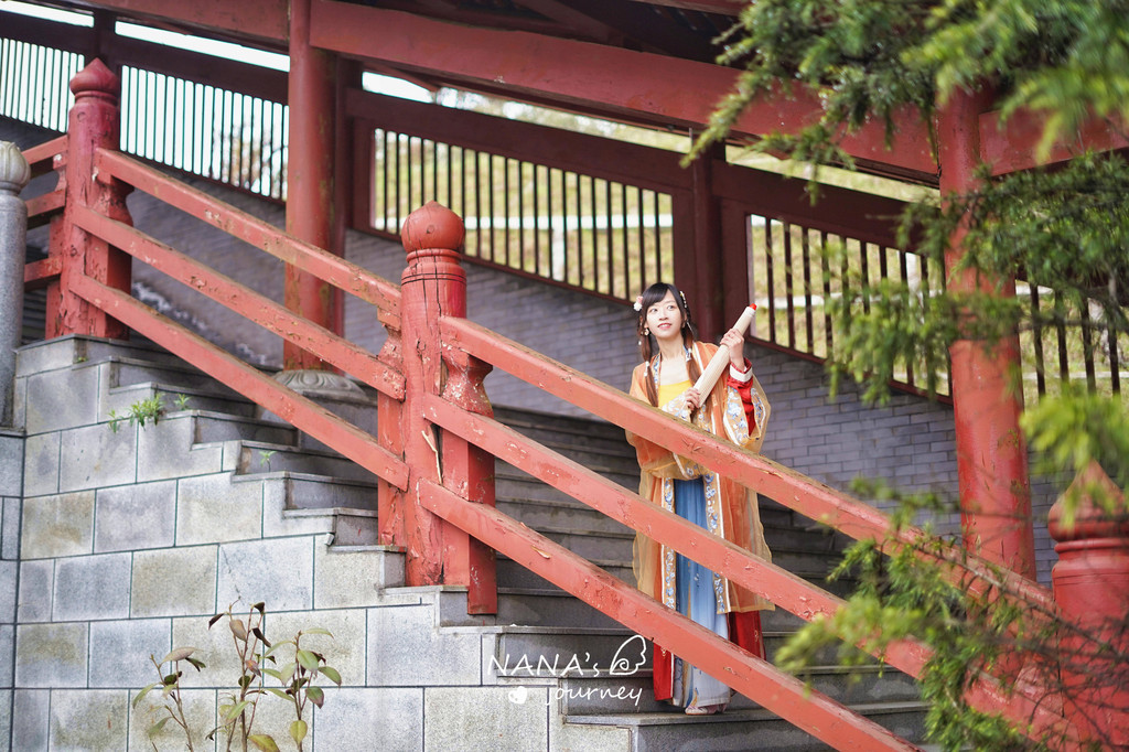 长廊、楼梯、寺庙的门,略暗沉的红色,每一细节的设计,想拍汉服的小伙伴,可以顺便过来取个经~