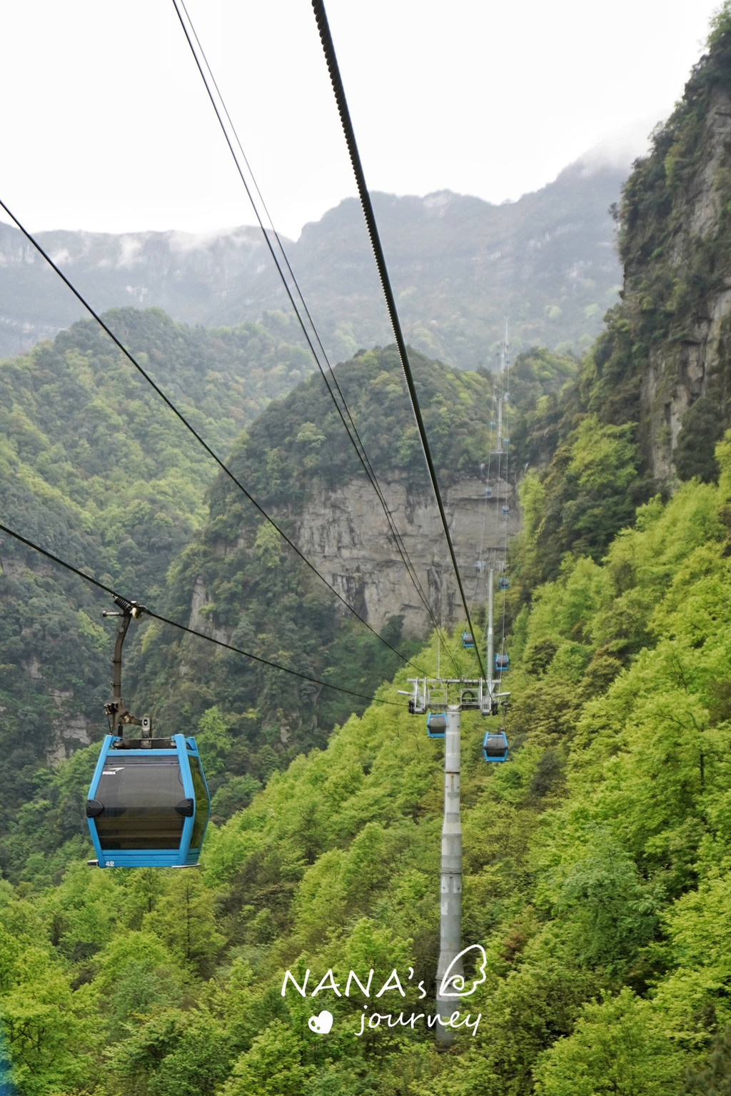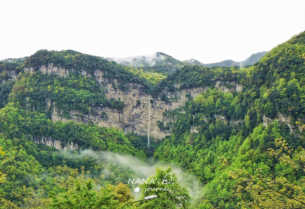 而这条索道更是中国垂直直上角度最大的索道,简单来说,很刺激。一路上,能看到迎客的招牌大瀑布,直挂在前方大块的岩壁之上,飞流直下。