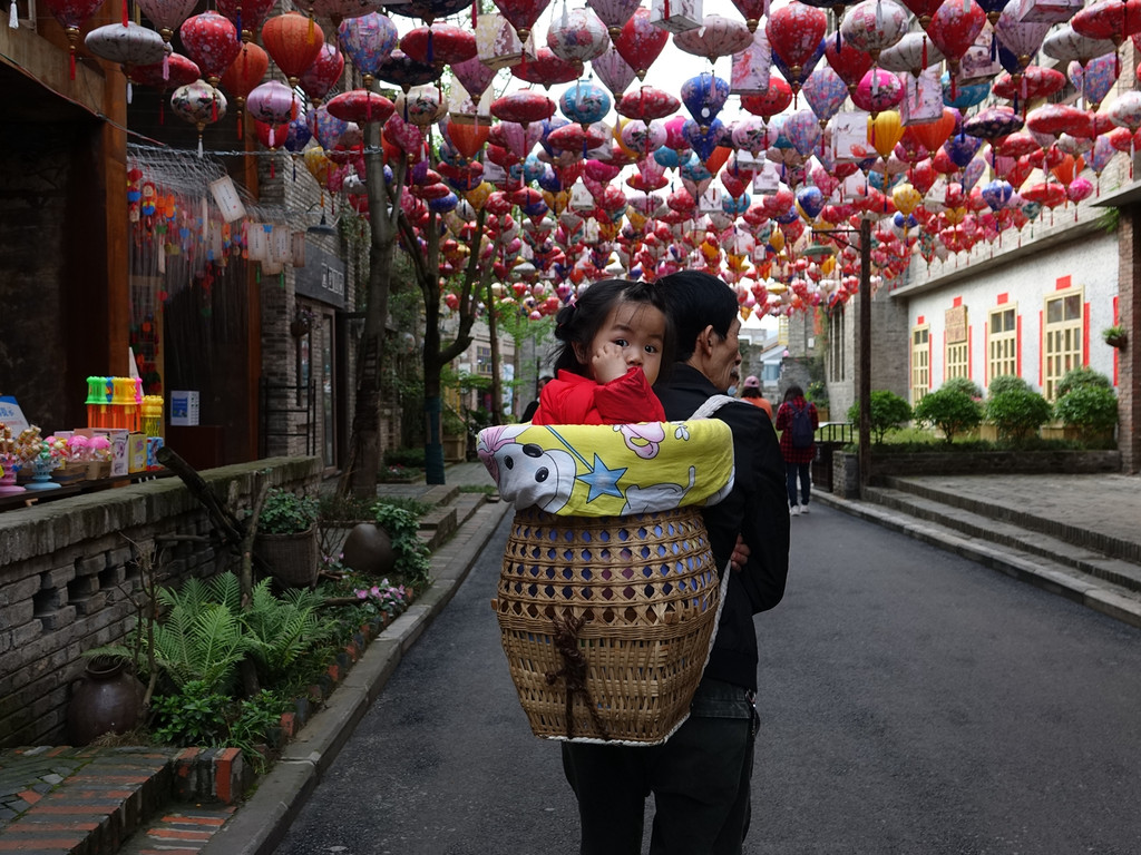 当地很多家长都会拿这种竹筐来背小孩,特别有趣。