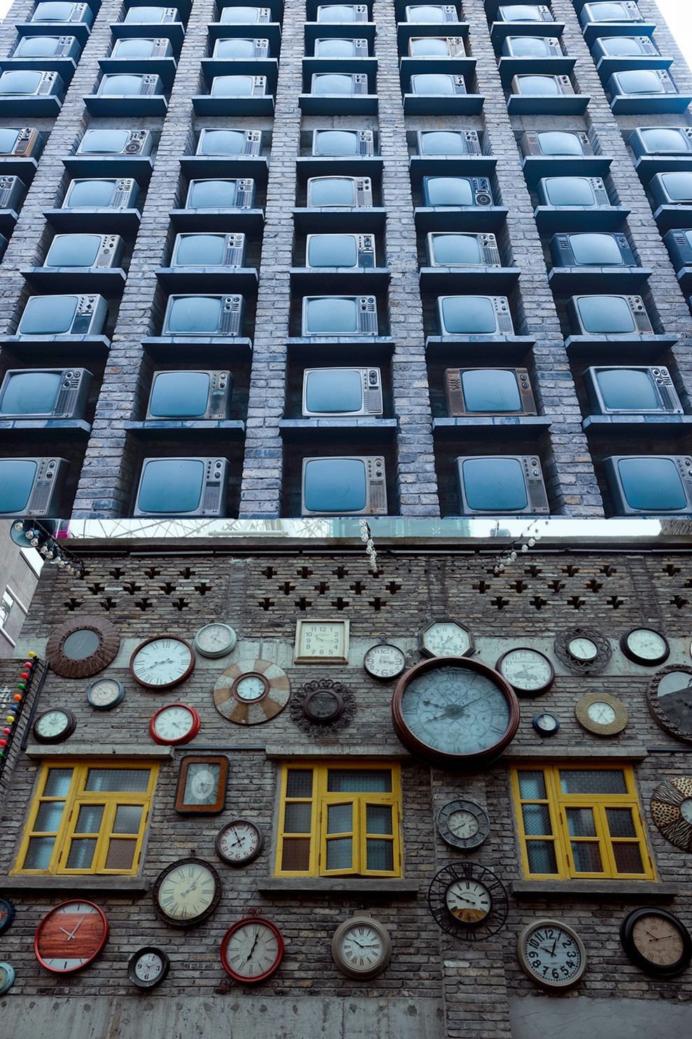 一面挂满时钟的墙,仿佛在不断地告诉你:你现在要开始穿越了。