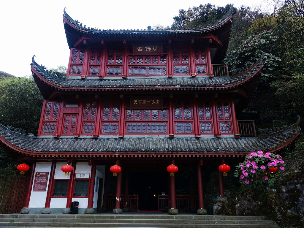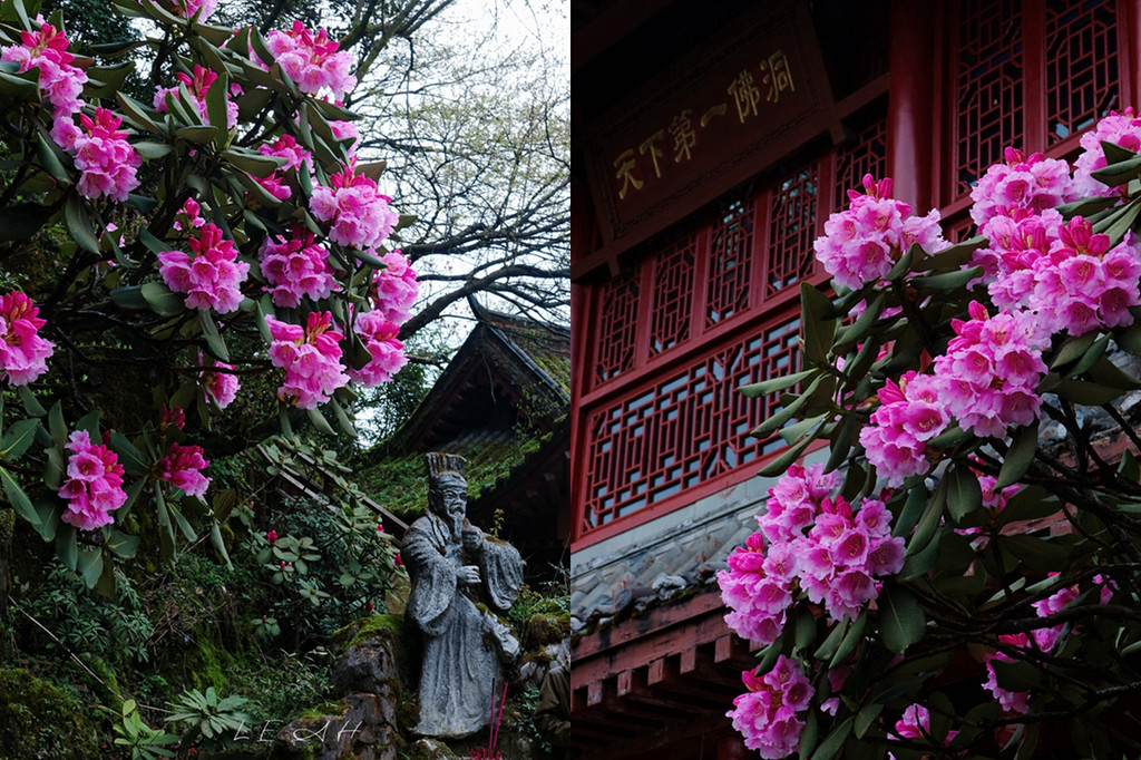 一路看下来,我们心中最有风骨的当属古佛洞门口这一株:自石头壁上横向生出,与地面成平行之态,树干既矮且瘦,却开出了整座山的春意盎然。深山杜鹃,雍容华贵,却美而不自知,才是真美呀。