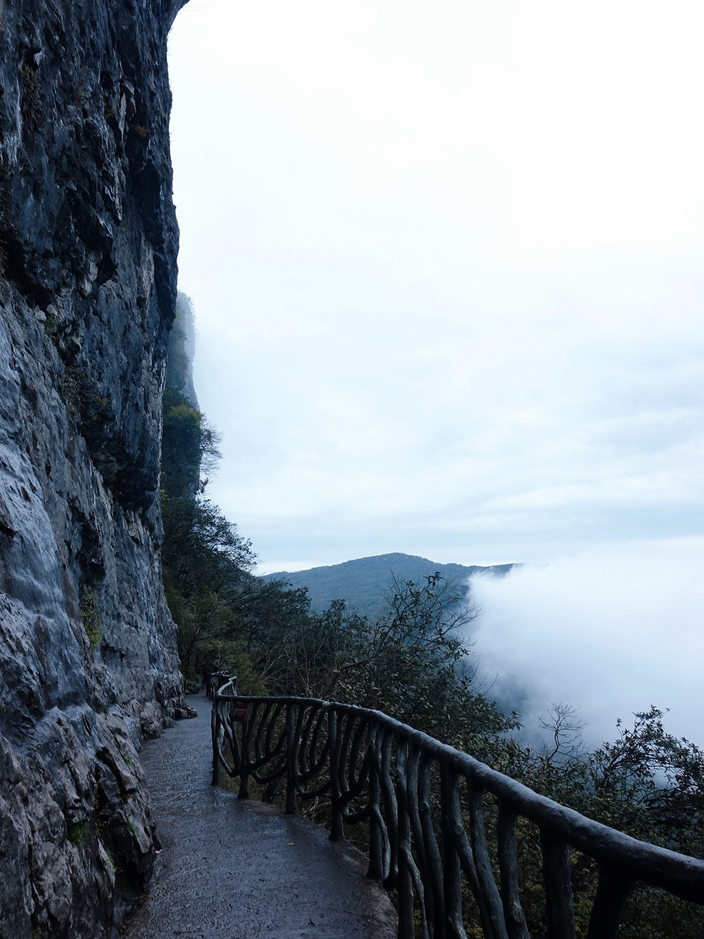 行走在山巅,在海拔2000米的高度,踱步于挂在悬崖峭壁上的凌空栈道,一侧是万仞峭壁,一侧是万尺深渊,本身便是一个很独特的体验。
