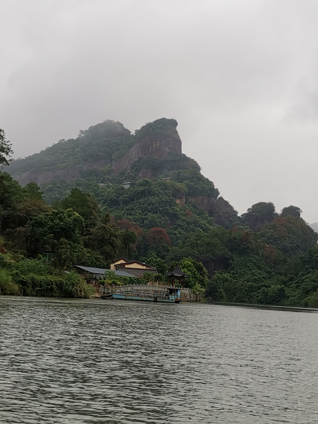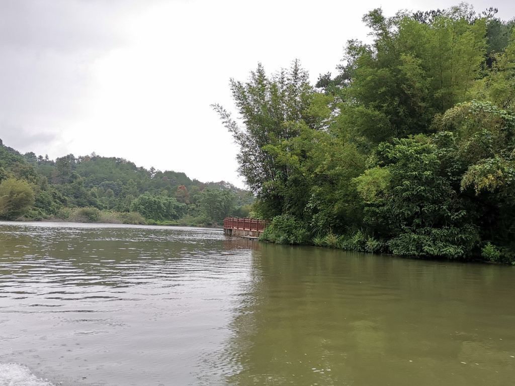 离开阳元石景区,游客服务区用了午餐,后购船票游锦江画廊。登船前,雨很大,待上得船后,雨止,山顶有雨雾,煞是迷人。