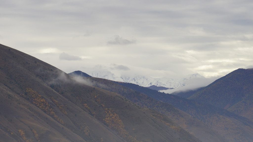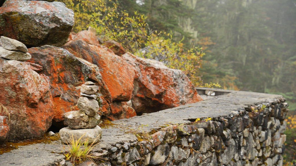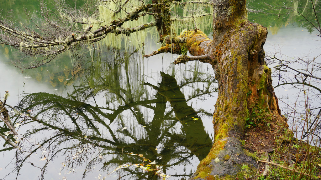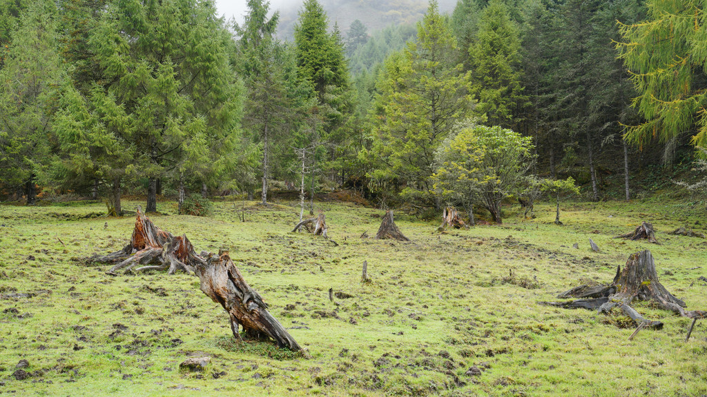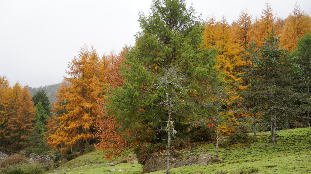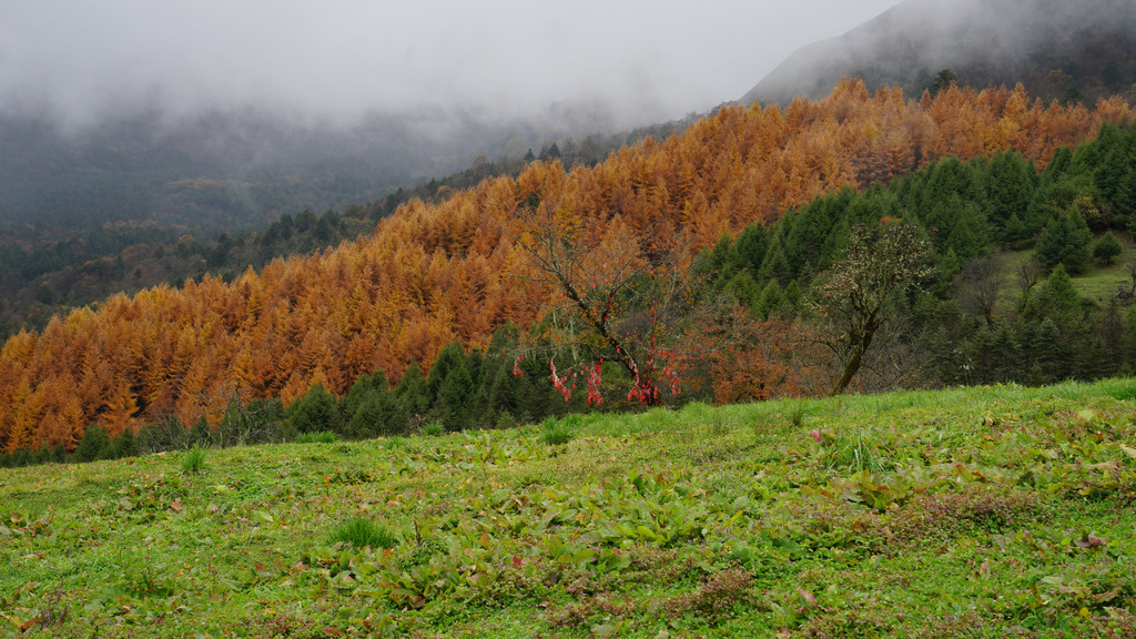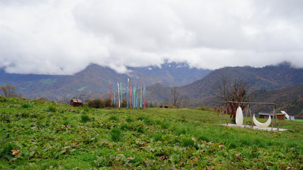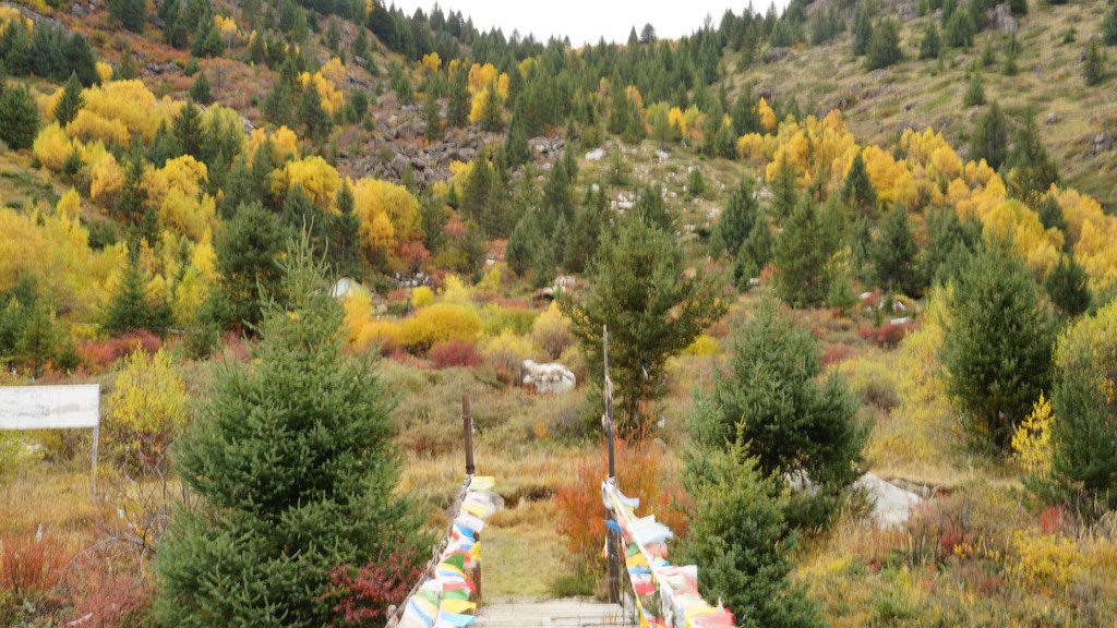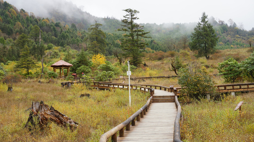 被称为康定情歌风景区的《木格措》其实是条沟,往返90元车票的景交车从沟底盘旋而上,其最著名的是位于高处的的一泓湖,日《木格措》,可是山上大雾迷漫,周围的雪山不见了。