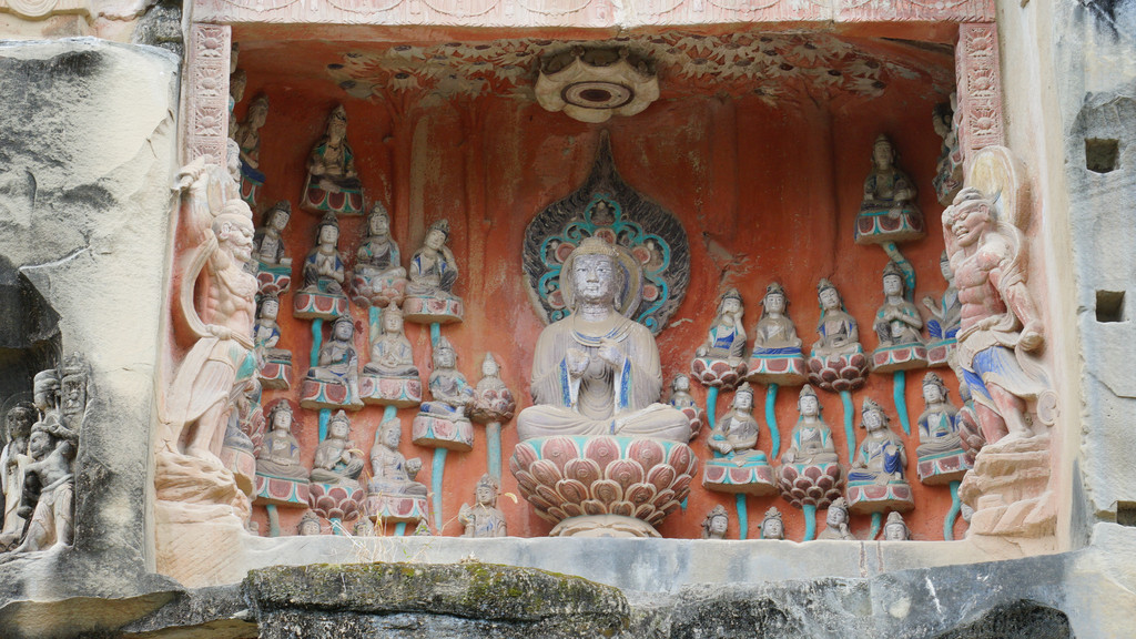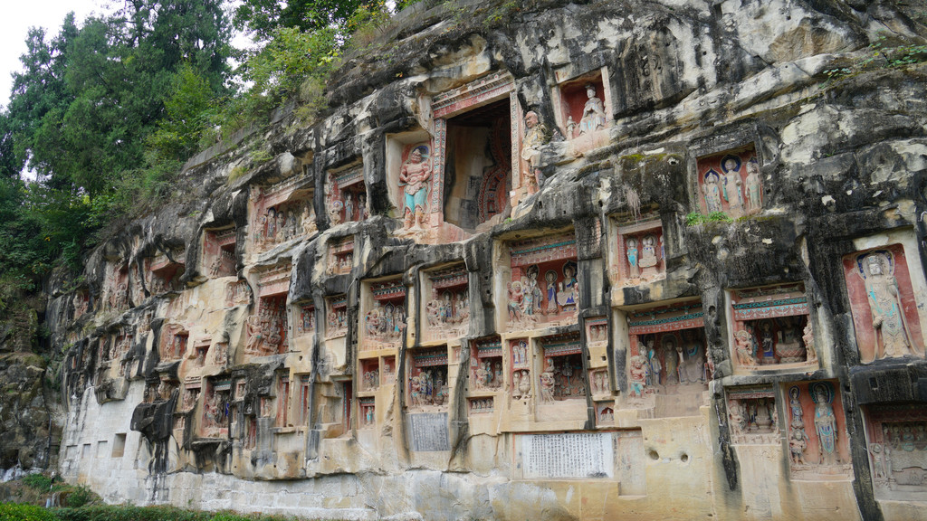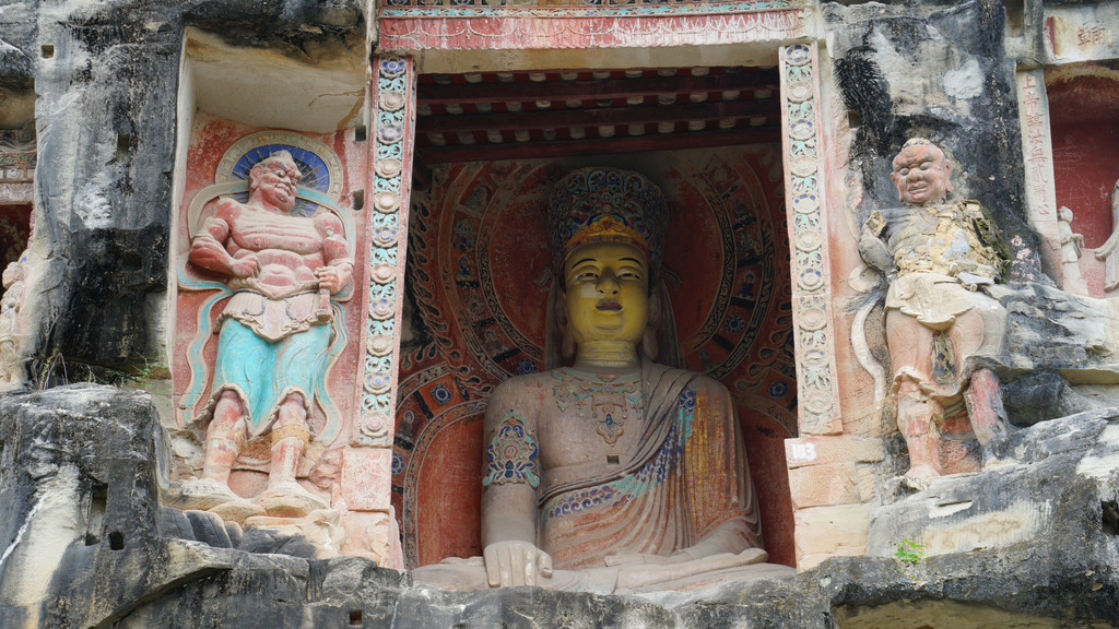《南龛石窟》始建于隋,盛于唐。雕刻精美,色彩鲜艳,颜色至今未退。被称为“盛唐彩塑,全国第一”,但规模略小。