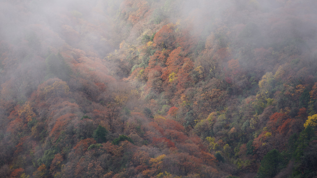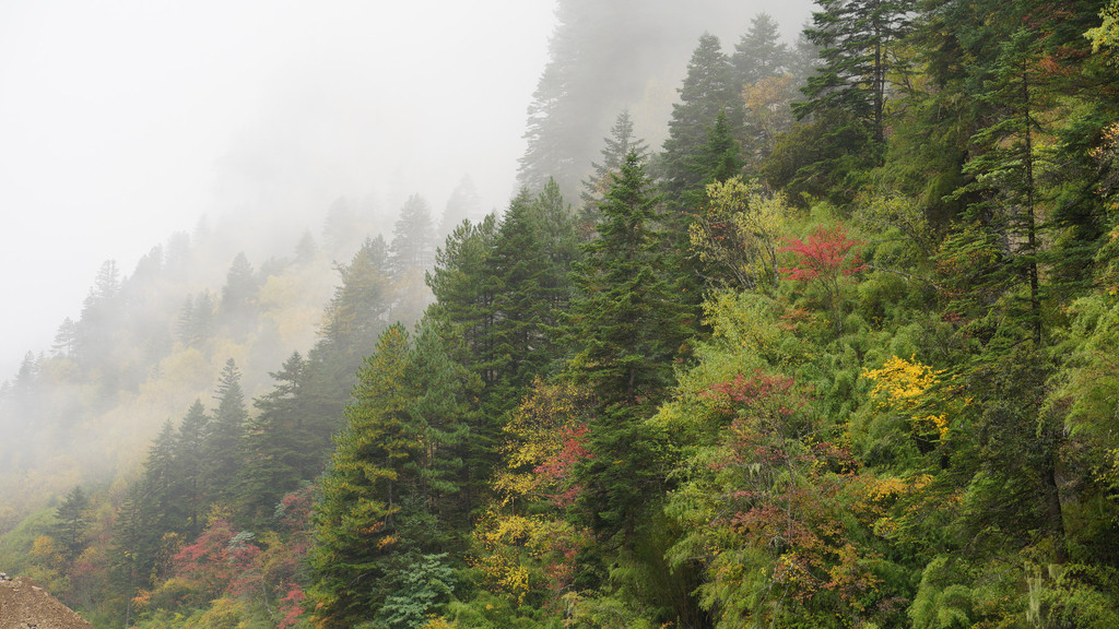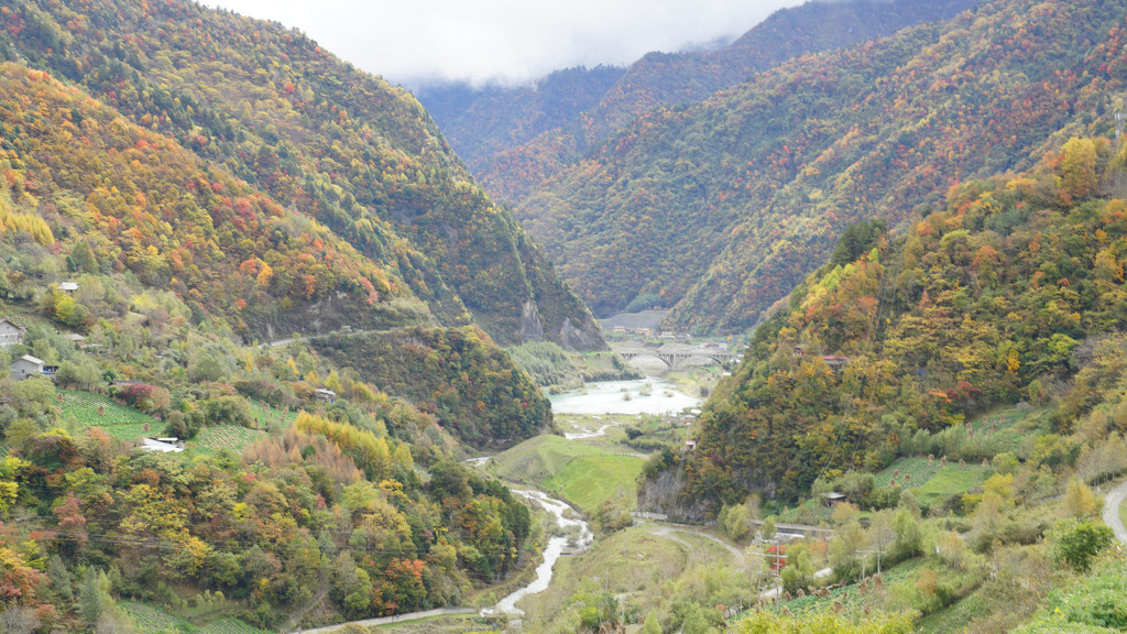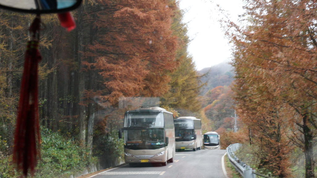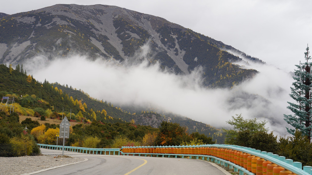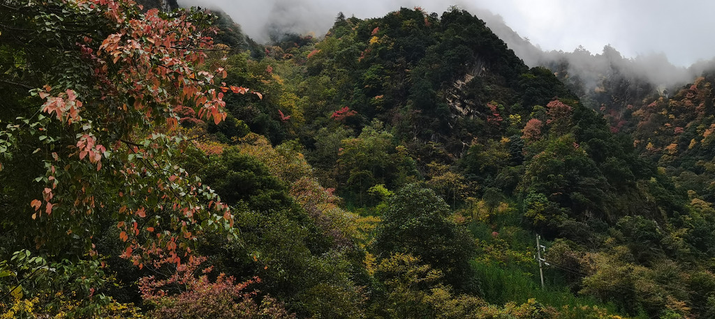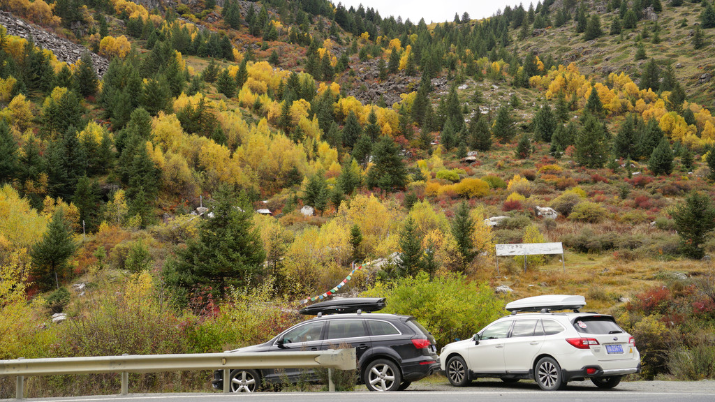 清晨国道边景色宜人,彩林浓郁,正是一年中最好时节。