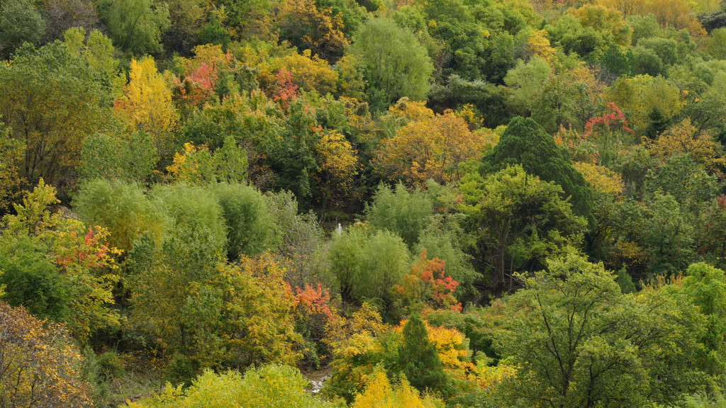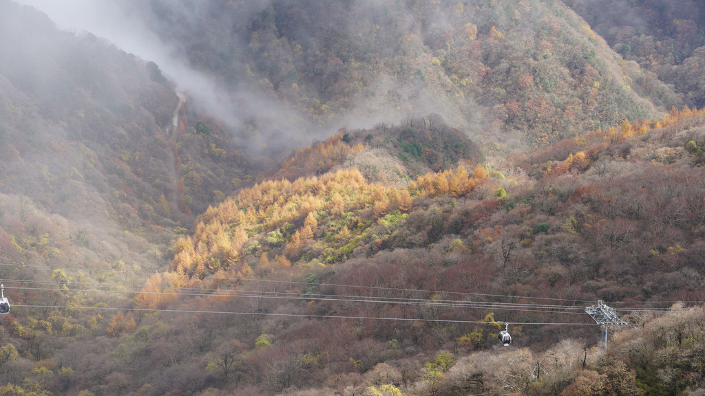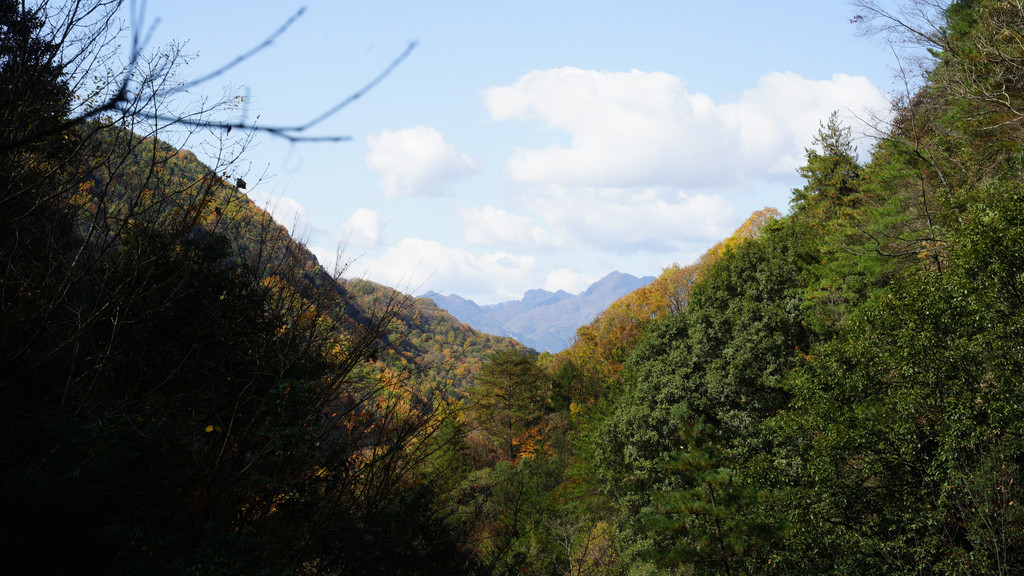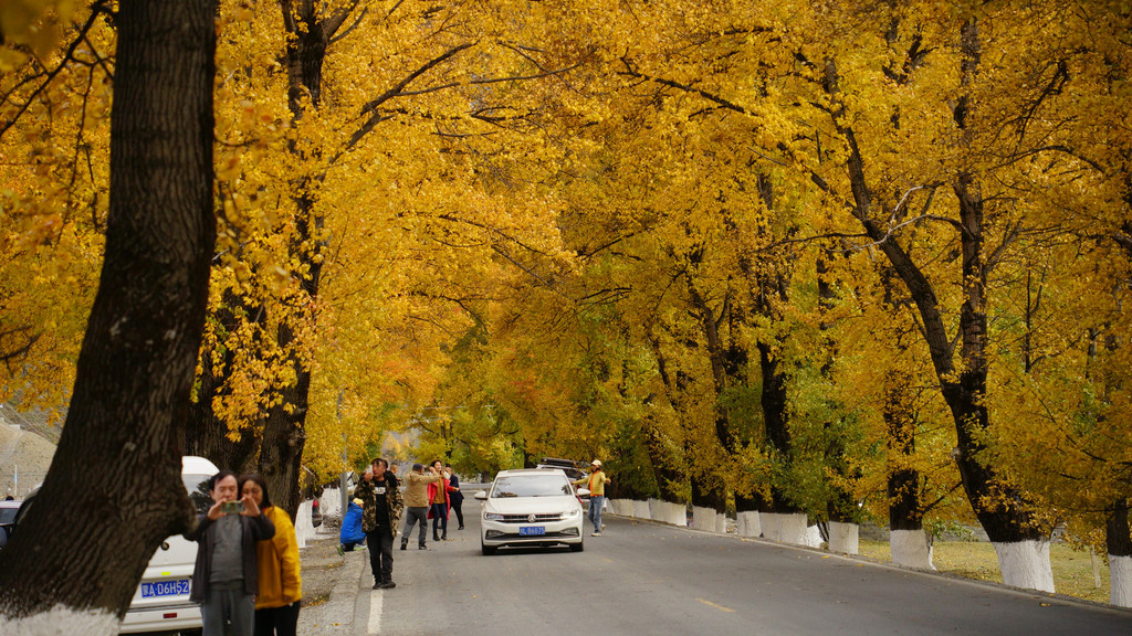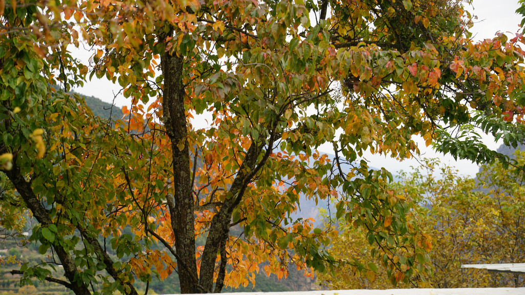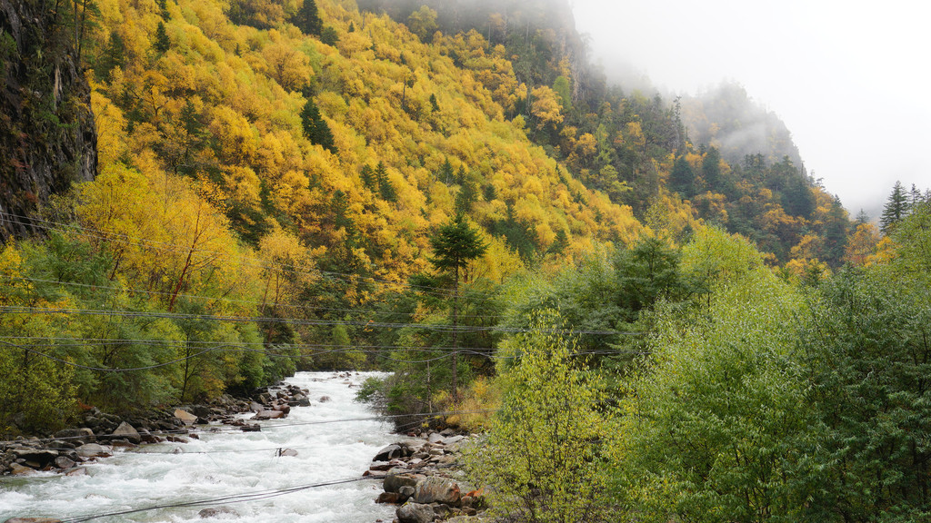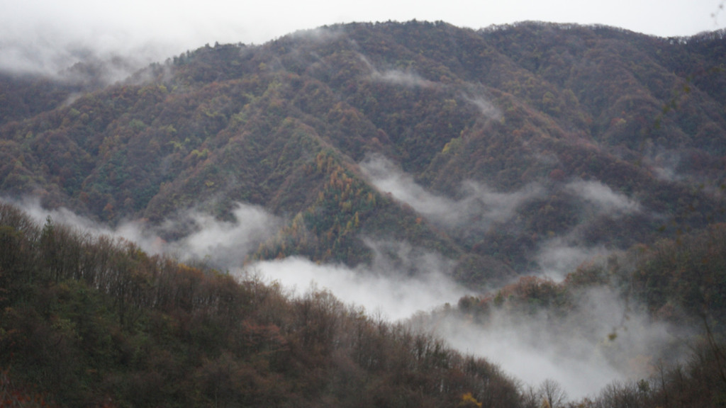 清晨国道边景色宜人,彩林浓郁,正是一年中最好时节。