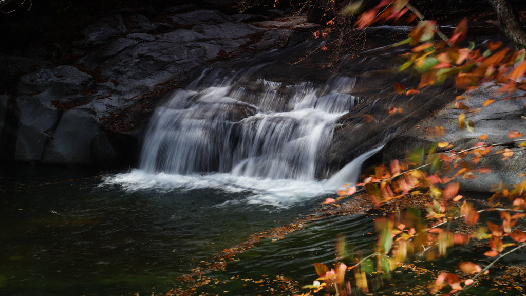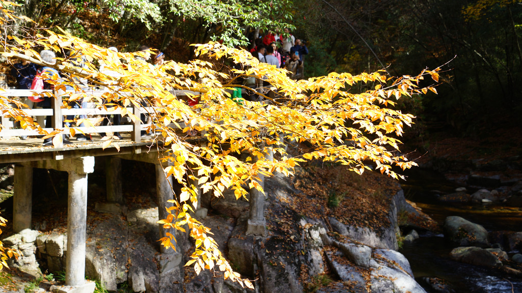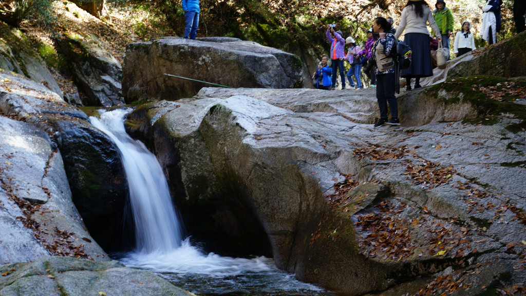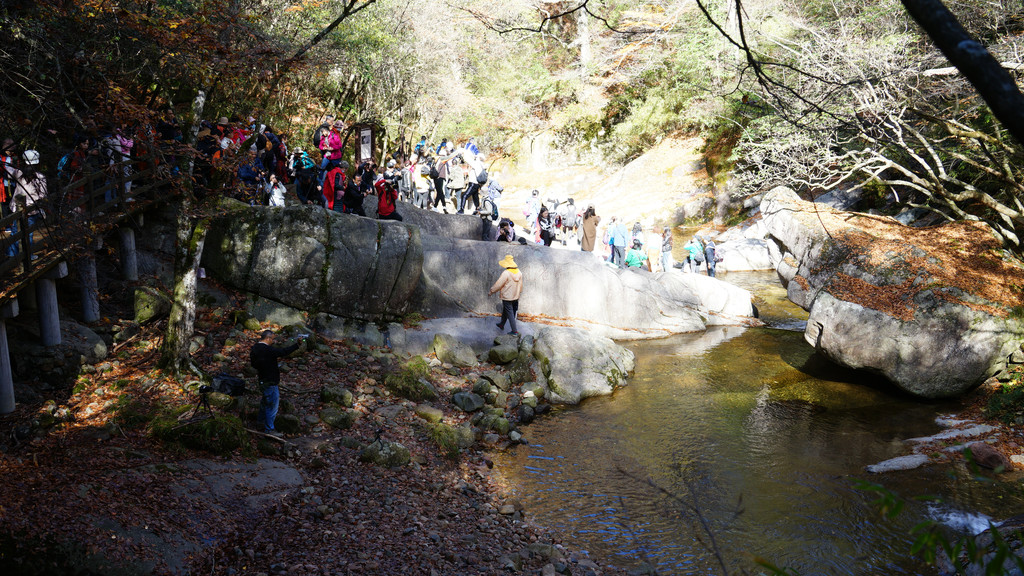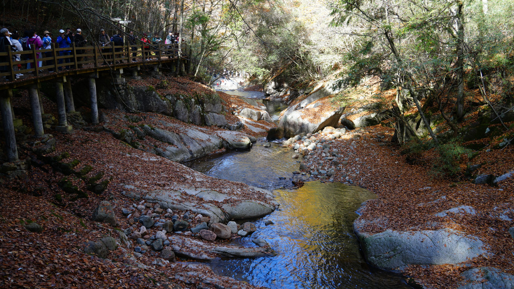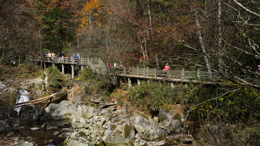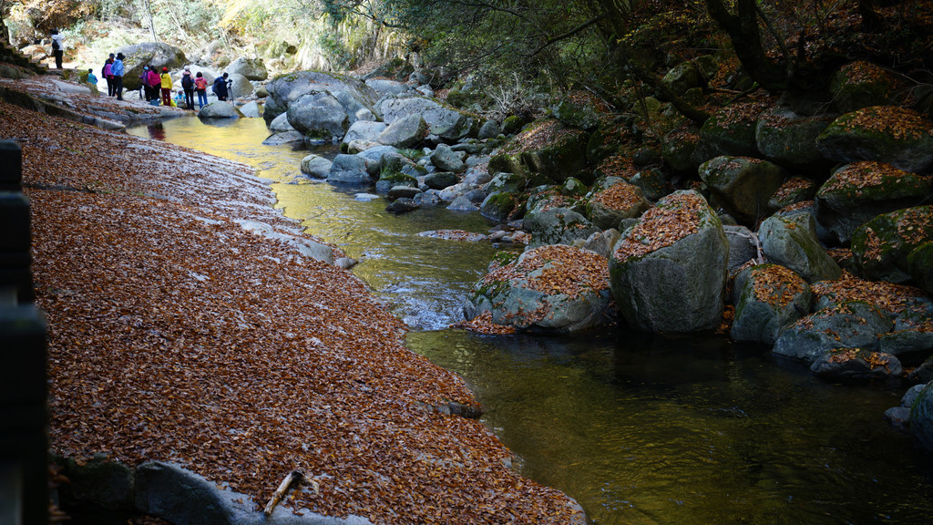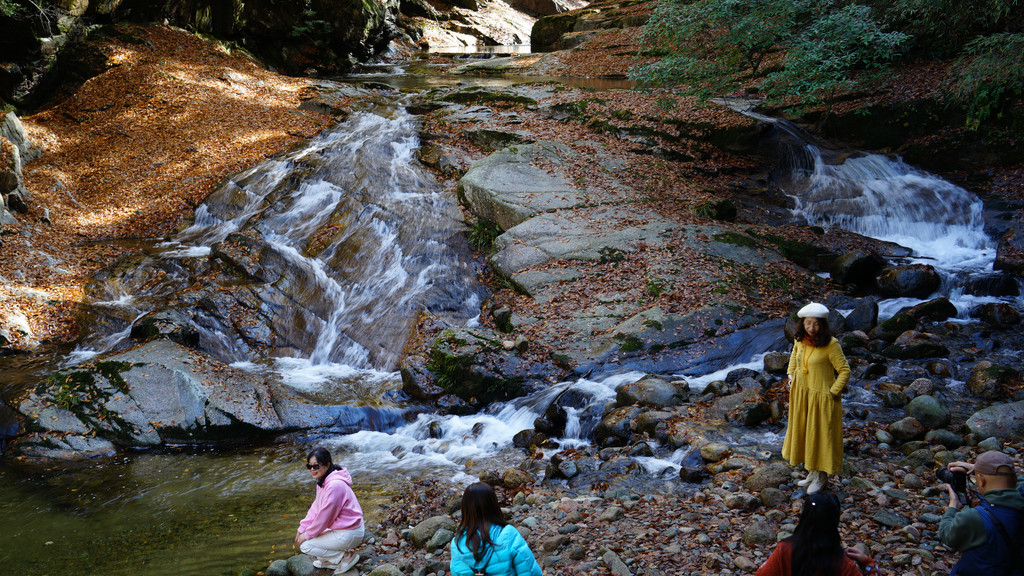 因有溪、瀑、潭,加上彩林、落叶缤纷,这里成了童话世界,长枪党的首选,靓女们的最爱